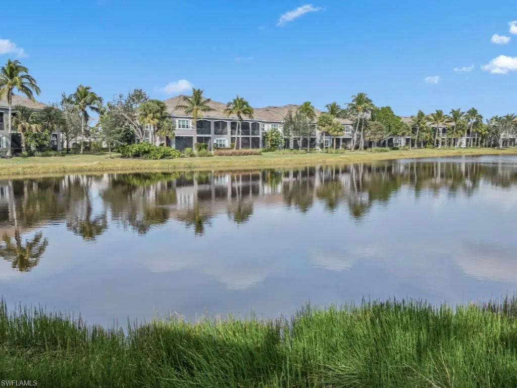 Welcome to Varenna! This second floor coach home has been immaculately maintained and offers 2,512 square feet of luxurious living space with a fully lit, maintained and rently inspected elevator. Freshly painted and new wood like laminate neutral flooring throughout with a custom designed stair railing system. This home features plenty of living space with the living room and family room both adjacent to the kitchen and a dining room with plenty of space for entertaining. Both living spaces open to the screened lanai with electric storm screens,and glass sliders leading to the outdoor space for relaxing as well as outdoor dining. Step outside onto the covered, screened-in lanai and immerse yourself in the tranquility, offering a southwestern exposure of gorgeous water views. The newly renovated and updated kitchen, including a breakfast bar, features white cabinetry, new quartz countertops with white appliances including a new refrigerator. Two large bedrooms,in addition to the master suite, each featuring their own full en-suite baths for privacy is very welcoming for guests.The guest bedroom has a private balcony for relaxing as well. The master bedroom en suite has two full walk in closets, a spa like bath and separate shower with dual vanities. The master opens to the screened lanai overlooking a serene lake. This pristine home has plantation shutters throughout, and custom blind window treatments in the master suite. The exterior boasts a newer tile roof, new impact glass windows, new exterior paint,and a charming private courtyard entrance. (2023) Experience Fiddler’s Creek, a blend of elegance, comfort and captivating views in this exceptional Naples condominium in a sought-after gated resort lifestyle community. Residents of Fiddler’s Creek enjoy world-class amenities, including a state-of-the-art fitness center with trainers and classes, tennis, pickleball, bocce, spa services, sauna, steam rooms, casual and fine dining, a resort-style pool with slides, waterfalls and pool-side service. You will enjoy an active community with ample sidewalks for recreation, bicycle ride, jog or dog walk. Golf, beach and marina memberships are available. There is no wait for the optional golf membership, with new spectacular golf clubhouse and newly renovated golf course. Ideally between downtown Naples and pristine beaches of Marco Island, this home is a combination of luxury, privacy and convenience. Great location close to beaches, boating, kayaking, paddleboarding, parks, executive airport, restaurants and shopping.