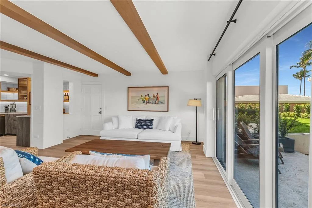 Welcome to your dream retreat—a stunning ground-floor 2bed/2bath pied-à-terre that blends sophistication, convenience and seaside tranquility in perfect harmony. Step through the patio doors and onto the soft sands, where the Gulf waters beckon just beyond your doorstep. With exclusive direct beach access, you are invited to live your life in effortless luxury. Fully renovated to perfection, this home boasts contemporary designer furnishings that exude timeless elegance. From Restoration Hardware’s impeccable craftsmanship and Serena & Lily’s coastal-inspired charm to cortex flooring, custom shiplap walls, gourmet kitchen with high end appliances, wall to wall tiled bathrooms and more, every detail has been thoughtfully curated to create a space that is both chic and inviting. As you walk into the living area, your gaze will be drawn to the breathtaking views of the Gulf—an ever-changing masterpiece framed by your impact glass sliders. Whether you’re sipping coffee at sunrise or unwinding with a glass of wine at sunset, the beauty of the ocean becomes an integral part of your daily life. The beachside patio is more than an extension of your living space; it’s your private gateway to paradise. Imagine hosting intimate gatherings with the ocean breeze as your backdrop, or simply stepping outside for a quiet moment of reflection as you watch the waves roll in. No stairs, elevators and long hallways to navigate. Ideal for the discerning buyer, this residence is located on the Moorings beach in Shores of Naples community, just north of Doctors Pass – a favorite spot for locals to watch pelicans fish and dolphins play as sun goes down. Shores of Naples is a low density exclusive community of only 32 homes, well managed with a manager on site, with no rentals allowed and just minutes away from the best that Naples has to offer. Don’t miss the opportunity to own this one-of-a-kind coastal haven.