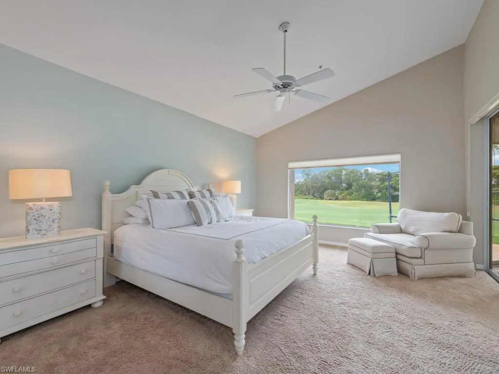 Step inside and be captivated by breathtaking golf course and sunset views that set the tone for this exceptional residence in Waterford at Bonita Bay. This end unit, Crystal floor plan, the largest in the community, offers over 2,700 square feet of light-filled living space with soaring vaulted ceilings and a flow designed for both comfort and entertaining. A bright, open layout flows effortlessly into the enclosed Florida room, where sliding glass doors open to a glass and screen enclosed lanai overlooking the lush fairways of the Creekside golf course. With the screen enclosure and aluminum railings currently being replaced, you’ll enjoy indoor-outdoor living for years to come. The home’s thoughtful split-bedroom design ensures privacy, with each of the three bedrooms boasting its own ensuite bath. The primary bedroom also has a fabulous golf course view and an updated bathroom. Tile flooring throughout the main living areas adds ease to daily living. The kitchen showcases granite countertops, stainless-steel appliances, and a convenient breakfast bar perfect for casual dining. Nine new impact-resistant windows were installed in 2017. Conveniently located near the community pool. The spacious two-car garage and low-maintenance lifestyle make this home live like a single-family residence, without the upkeep. As a resident of Bonita Bay, you’ll enjoy private access to a pristine beach park, the waterfront Backwater Jack’s Restaurant, and multiple community parks. Riverwalk Park offers kayaking, canoeing, pickleball, tennis, and a boat launch. Golf enthusiasts will appreciate the opportunity to join the Bonita Bay Club, featuring five championship golf courses, a sports and racquet center, resort-style pool, state-of-the-art fitness center, and a luxury spa and salon. Meticulously maintained and beautifully appointed, this residence captures the essence of refined, relaxed living within one of Bonita Bay’s most sought-after neighborhoods.