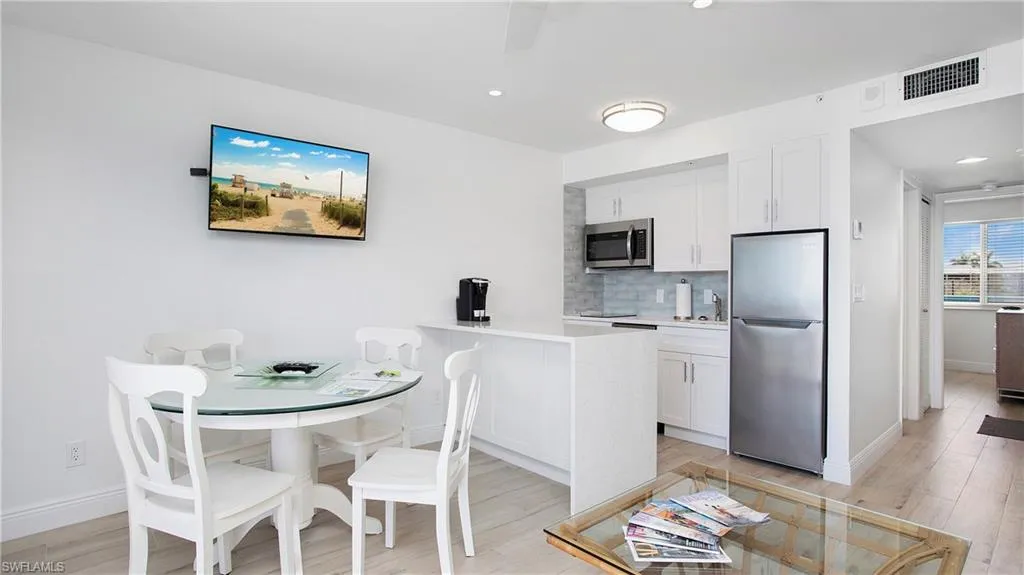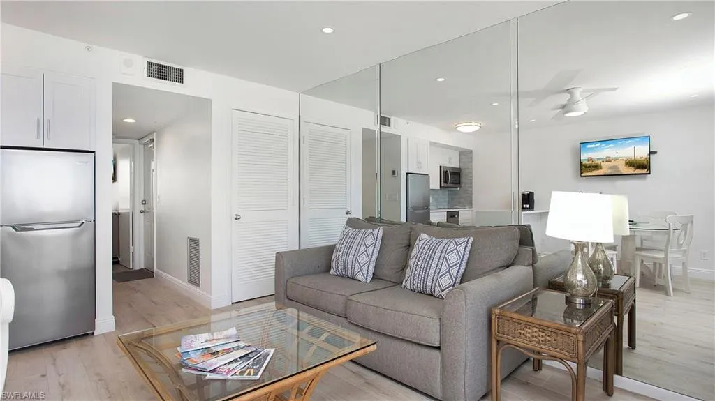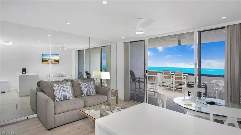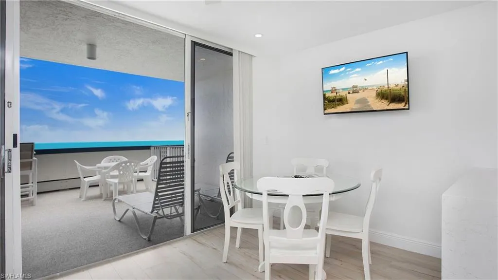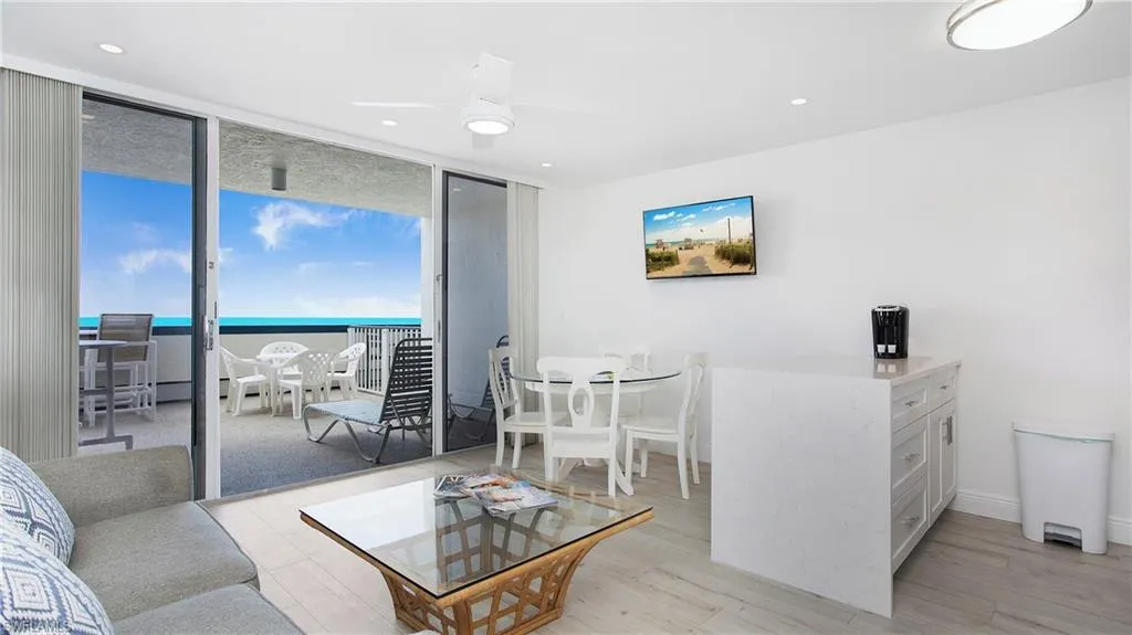 Welcome to Apollo 207! This highly sought after building located on Marco Island’s pristine beachfront is ideal for an investment, living or a combination of both. The Apollo complex offers weekly rentals, and is highly sought after with its location, building amenities, and the Sunset Grill below! Apollo 207 stands out due to its complete remodel! Everything from coastal beach plank floors, remodeled bathroom with walk in shower, and new kitchen that offers a waterfall island concept, new custom cabinets and appliances. Not to mention its oversized lanai offering world class sunsets! This unit is walk in ready, or ready to start having renters arrive! Don’t miss out on this unique opportunity!