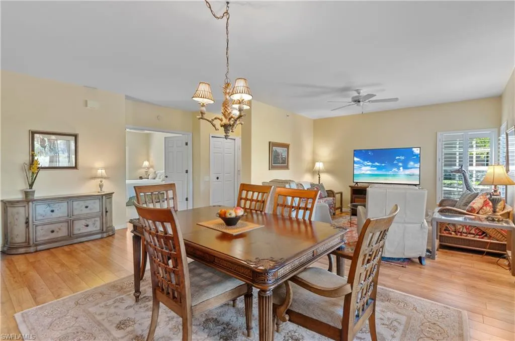 This beautiful carriage home offers spectacular view of the 13th hole, enhancing your daily living experience with natural beauty right at your doorstep. This first floor Winchester model has 1,446 sq., ft., 2 bedrooms and 2 bathrooms that are setup like two suites plus an enclosed lanai which adds an additional 238 sq. of living space. Waterproof, Wood Grain Luxury Vinyl Plank Flooring throughout the main living areas, both baths completely remodeled in 2023, hot water heater and washing machine installed in 2024. Professionally installed plantation shutters throughout home. This home is being sold fully furnished for a true turnkey opportunity—move in and start enjoying your new home immediately.