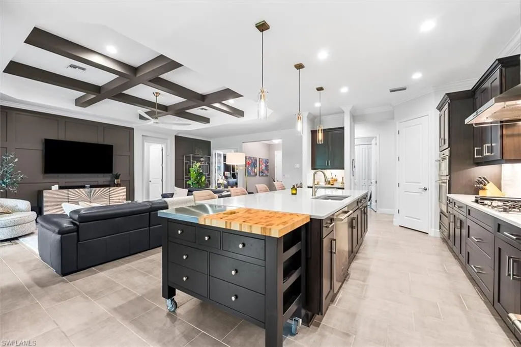 Welcome to your future home in Verandah—that includes a TRANSFERABLE GOLF MEMBERSHIP that lets you skip the waitlist and start enjoying the community’s resort-style lifestyle right away. This 4-BED plus DEN, 3-BATH home with a 3-CAR GARAGE blends elegance with comfort, featuring custom woodwork, 8-foot doors, and coffered ceilings in both the great room and primary suite. The kitchen is equipped with GE Monogram appliances, soft-close cabinetry, and a wine cooler, perfect for everyday living and entertaining alike. The layout includes two guest bedrooms with a shared Jack and Jill bath, a separate pool bath, and a den with built-in shelving for a refined home office. The primary suite is privately positioned with no neighbor to the right and offers a built-in closet system and spacious bath. The laundry room is large and functional, while the painted garage floor, security system, and foam insulation add both style and efficiency. The home’s south-facing rear exposure ensures all-day sunshine and overlooks a peaceful preserve view—the perfect setting for your future custom pool. With the pool prep already complete, the possibilities are endless to design your own outdoor retreat tailored to your lifestyle. Verandah offers two championship golf courses, tennis and pickleball, a fitness center, resort-style pool, kayaking on the Orange River, scenic trails, dog parks, and multiple dining options. With its combination of craftsmanship, thoughtful upgrades, and an ideal canvas for a personalized backyard oasis, this home delivers the best of Florida living—ready for you to make it your own. Call today to see this stunning home!
