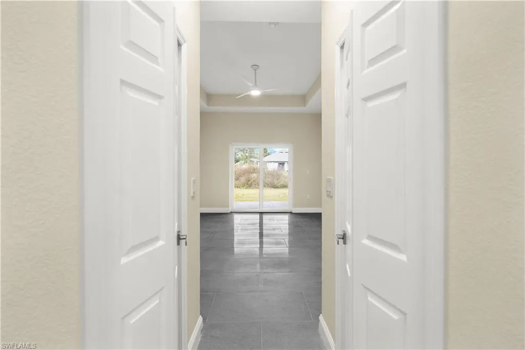 Welcome to your BRAND NEW 2024 CONSTRUCTION home in the heart of LEHIGH ACRES! This stunning 3 BEDROOM + DEN, 2 BATH residence offers a modern OPEN FLOOR PLAN with elegant GRAY TILE FLOORING throughout and impressive TRAY CEILINGS that enhance the home’s airy feel. The spacious GREAT ROOM seamlessly connects to a beautifully designed KITCHEN featuring SOFT-CLOSE CABINETS, GRANITE COUNTERTOPS, STAINLESS STEEL APPLIANCES, a decorative BACKSPLASH, and an OVERSIZED ISLAND perfect for entertaining or family gatherings. Enjoy TWO MASTER SUITES, each offering WALK-IN CLOSETS, DUAL SINKS, and gorgeous WALK-IN SHOWERS for a touch of luxury and privacy.