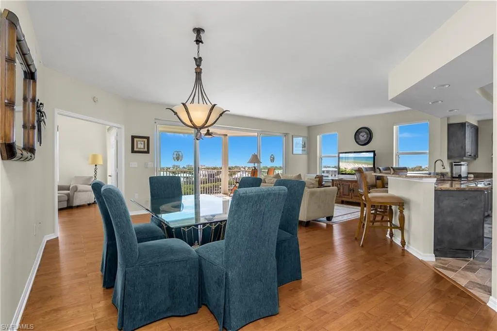 Sweeping bay views, direct Gulf access, and steps to the beach — this is Florida at its finest at Bridgewater, a highly desirable boutique condo community. For boating enthusiasts, a private deeded boat slip is available for purchase, providing direct Gulf access with no bridges — a rare and coveted opportunity. For putting your toes in the sand, you’re a short walk away from Barefoot Barefoot and Bonita Beach. Or relax at home and feast your eyes on panoramic water views from every room as well as spectacular sunsets and an array of sparkling lights after dark. It’s the very best of coastal living in this updated 3-bedroom, 2-bath condo perched on the 5th floor. This SOUTH-FACING, END UNIT residence is bathed in natural light and captures stunning views everywhere you turn. Inside, the inviting open floor plan showcases 9-foot ceilings, 8-foot sliders, and seamless indoor-outdoor living that brings the water’s beauty right to your lanai. The remodeled eat-in kitchen features granite countertops, stainless steel appliances, large pantry, and a cozy breakfast nook — complemented by a nearby formal dining area ideal for entertaining. The spacious primary suite is a serene retreat with his-and-hers closets and a beautifully redone bath offering dual vanities and an oversized walk-in shower. Two large guest bedrooms feature good-sized closets with built-ins. Bridgewater offers a true resort-style experience, surrounded by lush tropical landscaping and highlighted by a heated Bayfront resort-style pool and spa, expansive sun deck, fishing pier, BBQ grills, secured entry, two newly refurbished elevators, ample guest parking, and a private ground floor storage locker. Bridgewater is impeccably maintained and well managed, with reasonable fees. The complex also features a NEW ROOF, attractive entry fountain and freshly painted exterior. Truly, this is relaxed coastal living— the perfect place to enjoy sunrise strolls, sunset views, and everything in between.
