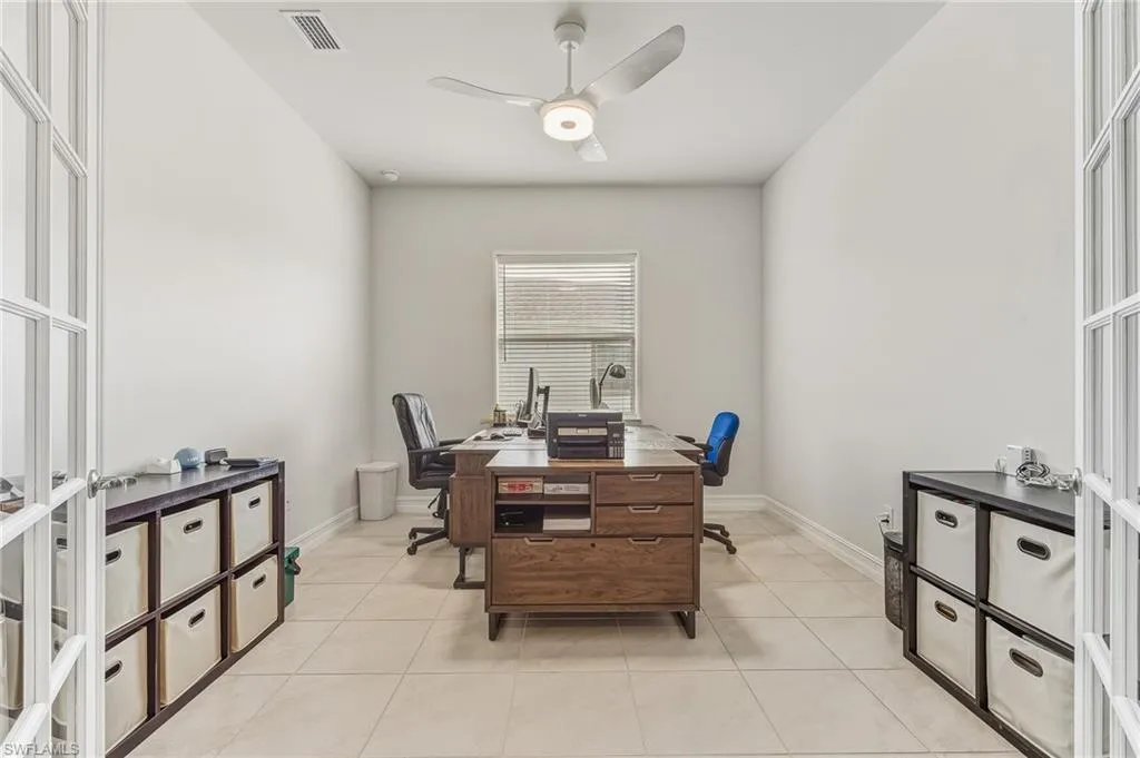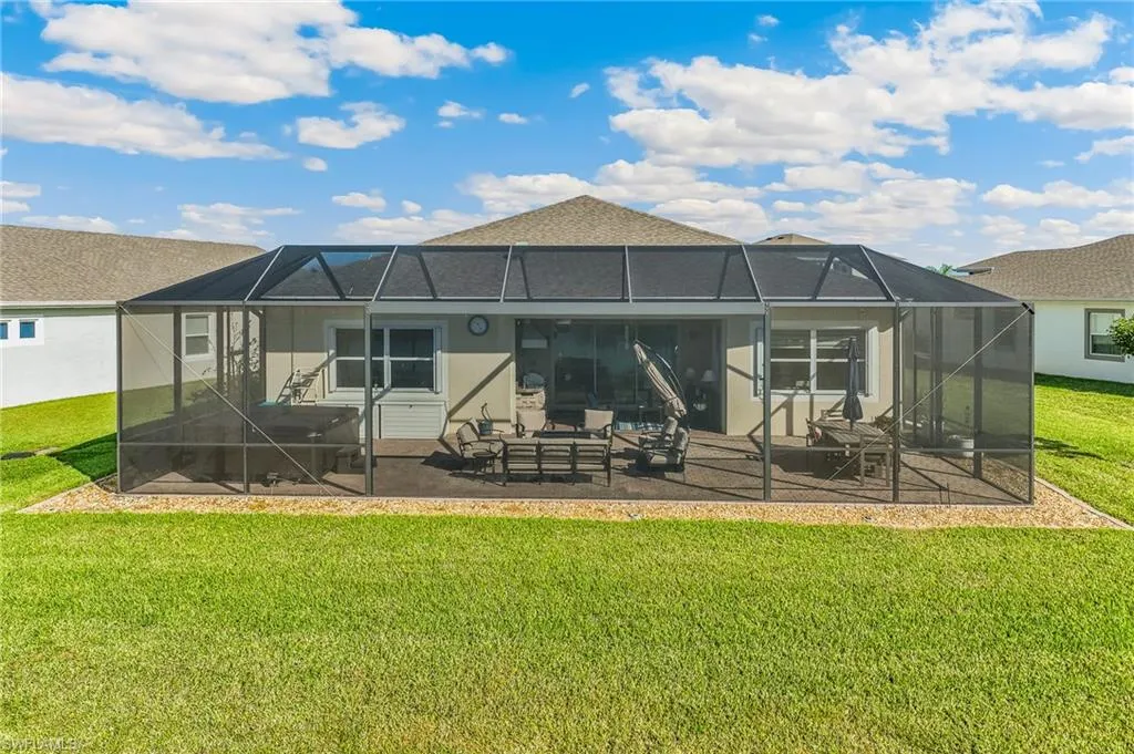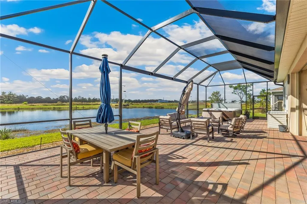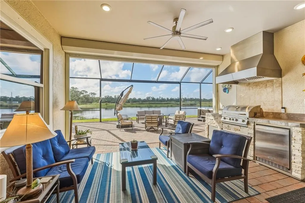 Step outside to a stunning 1,500 sq. ft. screened-in lanai featuring a hot tub and tranquil lake views. The outdoor kitchen is ideal for hosting, while the professionally landscaped yard, complete with irrigation, adds curb appeal. A three-car wide driveway with decorative pavers and a screened front entry welcome you home.
