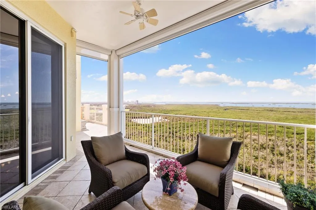 IMMEDIATE GOLF membership available! The most upgraded penthouse in Southwest Florida under $3 million! Featuring three bedrooms plus optional den (see supplements for rendering), four baths and a private two-car garage with an electric vehicle charger, this residence redefines elegance. As you go inside from your private elevator entrance, you find Carrara marble floors, quartzite countertops, high-end appliances, custom shades, lit cabinetry and oversized walk-in closets with an island. Enjoy epic sunrise and sunset views from two balconies overlooking Estero Bay and eastward, with the best views in Southwest Florida. West Bay Club offers world-class amenities such as an 18-hole golf course, resort-style pool, new fitness center, tennis, pickleball, dog park, boat launch and a private beach club with oceanfront dining, lounge chairs, umbrellas and drink service. The newly renovated clubhouse and Niblick restaurant complete the experience. Conveniently across from Coconut Point Mall and close to U.S. 41, this penthouse is ideal for golfers, boaters, beach lovers and more.