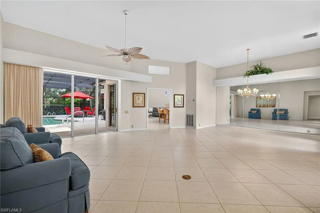 Welcome to beautiful 3821 Woodlake Dr., here in Bonita Bay! Rarely available – this single family POOL home w/ tons of privacy on a near half acre lot, is sure to check ALL the boxes! With such low inventory of homes available within the community, this is sure to go quick. Offering a great layout with 3 Bedroom + DEN, and multiple entertaining areas, all on 1 level with no stairs, AND 3 car garage. Tons of upgrades includes: Gas generator w/ warranty installed in 2023, water heater new in 2024, updated kitchen, and several windows have been replaced with impact proof windows. Luxurious Bonita Bay is centrally located, just minutes to RSW airport, has a brand new private beach club with beach shuttle, full service marina with wet slips and dry storage, community boat ramp, kayak launch, 2,400 acres of scenic walking and biking paths, butterfly garden, Backwater Jack’s restaurant, optional sports and golf memberships with 5 golf courses, multiple first class dining venues, resort style pool, state of the art fitness facilities, 18 tennis courts, pickleball, basketball, luxurious spa and salon, and pure peace, relaxation, and tranquility.