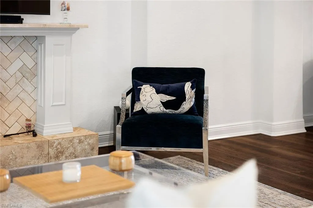 Immaculately maintained Toll Brothers Biella floor plan featuring 2 bedrooms, a spacious den, and 2 bathrooms. This beautifully appointed home offers a peaceful setting with serene wooded views and a thoughtfully designed interior. The inviting foyer showcases custom designer wall coverings, leading into a bright and open living area. The primary suite is a true retreat with a luxurious bathroom featuring a soaking tub set on a custom stone surround and separate shower. Enjoy the convenience of a 2-car garage and the comfort of living in the sought-after gated community of Aviano, just minutes from Naples’ world-class beaches, dining, and shopping.