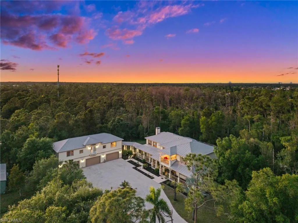 Secluded Retreat in the Heart of Fort Myers Live among the towering pine trees on over 2.8 acres in the heart of Fort Myers. This breathtaking estate offers a secluded retreat feel, while keeping you close to the conveniences of the city. Spend your days basking in the sun on your private patio or sipping tea on the wraparound porch. In the evenings, unwind as you watch the sky transform with stunning sunsets from your screened-in lanai. Inside the home, step into a spacious open-concept living area featuring a crackling wood-burning fireplace and a stylish entertaining bar. The gourmet kitchen is a true showstopper, designed for the modern chef with: Granite countertops, Pot filler for added convenience, Soft-close cabinetry, Premium stainless-steel Viking appliances, Two walk-in pantries. Host unforgettable gatherings in the formal living and dining rooms, perfect for special occasions. A spacious den completes the main floor, offering an ideal home office or a quiet reading nook. Wake up to the sound of birds among the treetops and start your day with coffee on your private balcony. The primary suite is a true retreat, boasting: A romantic wood-burning fireplace and spacious walk-in closet. Step into your spa-like ensuite with a soaking tub, travertine tile, and elegant finishes. This stunning home features four additional generously sized bedrooms, each with its own unique charm, along with three additional full bathrooms plus a pool bathroom. Outdoor Oasis! Host unforgettable gatherings on two spacious patios, ideal for grilling and entertaining. The show-stopper pool with a jetted hot tub offers the ultimate relaxation, while an outdoor shower adds convenience. The surrounding woods provide a private, tranquil atmosphere. A circular driveway ensures ample parking, and the oversized six-car garage offers plenty of room for all your toys. Bonus Guest Apartment: The 2,100 sq. ft. guest apartment is perfect for extended family or guests, featuring: A game room, extra living space, an additional bedroom and bathroom and utility area. Additional Features: Durable metal roof, Impact- resistant windows and doors for peace of mind. Don’t miss this rare opportunity to own a private oasis in the heart of Fort Myers. Make this dream home a reality today!