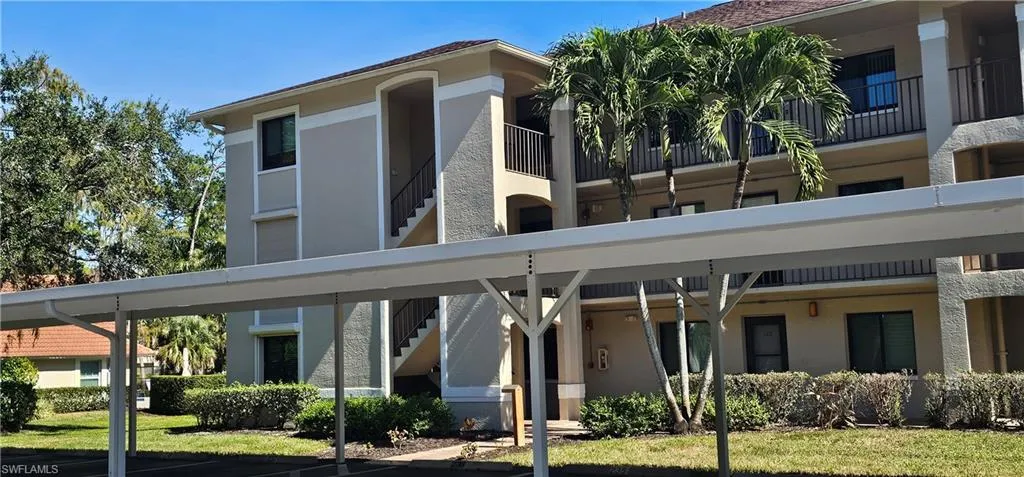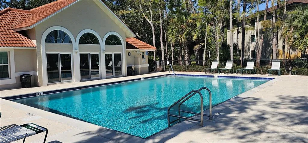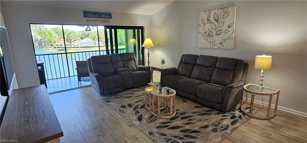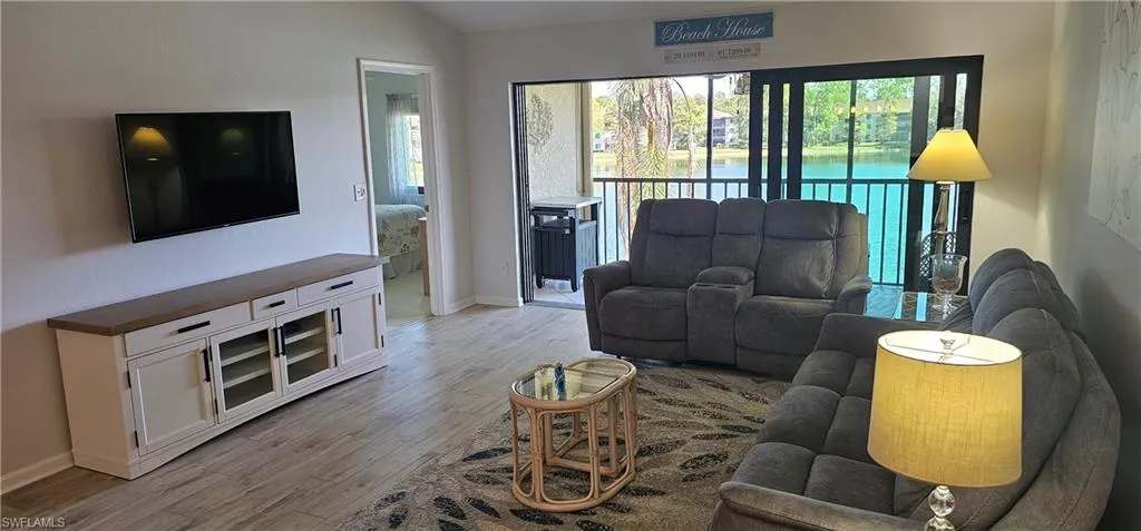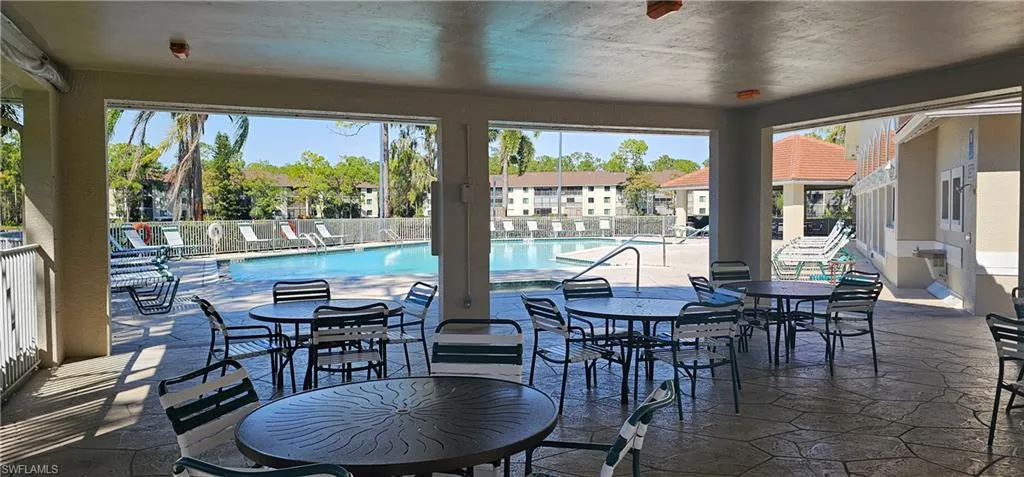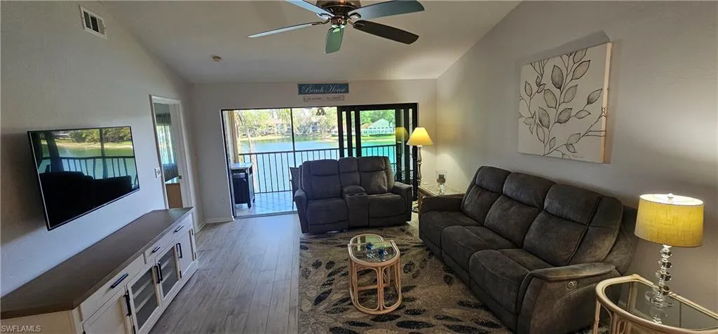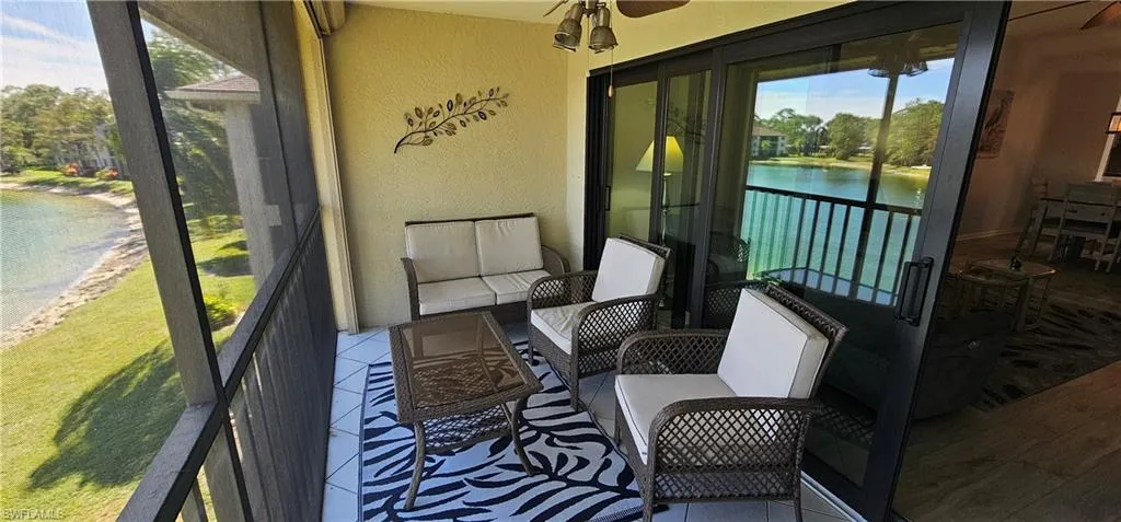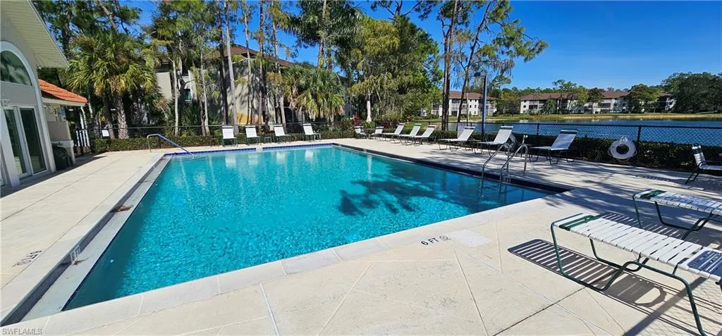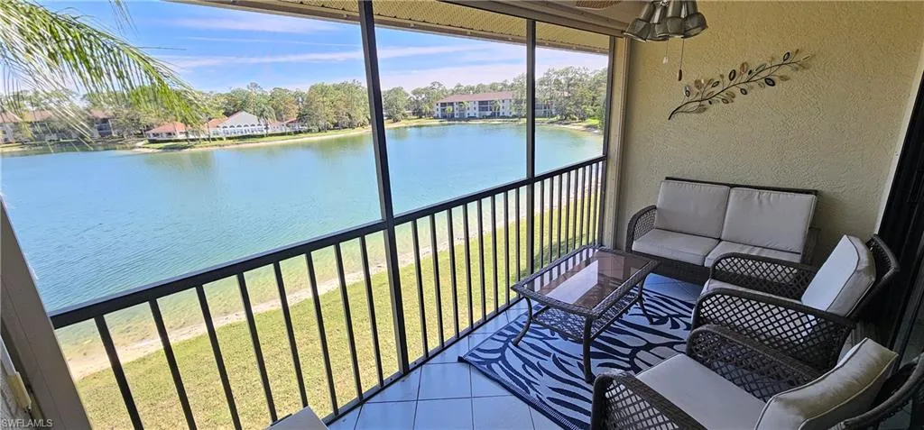 Enjoy living the southwest Florida lifestyle in this fabulously updated 3 bedroom 2 bath corner unit condo on the top floor with a stunning and expansive lakeview. Relax and unwind on your private screened lanai and watch the fish jump in the lake just outside. This 3rd and top floor home provides the new owner with peace of mind and comfort that there will be no noisy neighbors above you and boasts plank style tile flooring and high ceilings throughout the main living areas which provide an open and spacious feel to the home. The updated kitchen looks out over the main living area so you don’t miss any of the action and features stainless steel appliances and quartz counters. The roomy master bedroom suite features an updated private bath with a large tiled walk in shower and spacious walk in closet. There are 2 guest bedrooms perfect for hosting company or turn one of them into an office or den. Discover the charm of Deauville Lake Club which is ideally located just minutes to downtown, 5th Avenue shopping and dining and some of the finest beaches in Naples. Deauville offers 2 clubhouses, 2 pools, a spa, grills, tennis courts, shuffleboard and in a park-like peaceful setting with picnic areas and benches to sit and enjoy nature. This active community and membership offers dancing, water aerobics, bingo, card games, exercise classes, and for those with a creative flair, the philanthropic artist group offers a chance to indulge in artistic pursuits while contributing to the community. Recent updates have further enhanced the living experience at Deauville as the buildings now boast impact-resistant windows and sliders, new roofs, carports, and freshly painted exteriors. The modernized smoke alarms ensure safety, while the inclusion of cable and Wi-Fi in the HOA dues adds to the convenience of residents including poolside Wi-Fi.