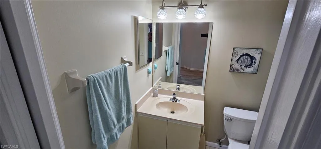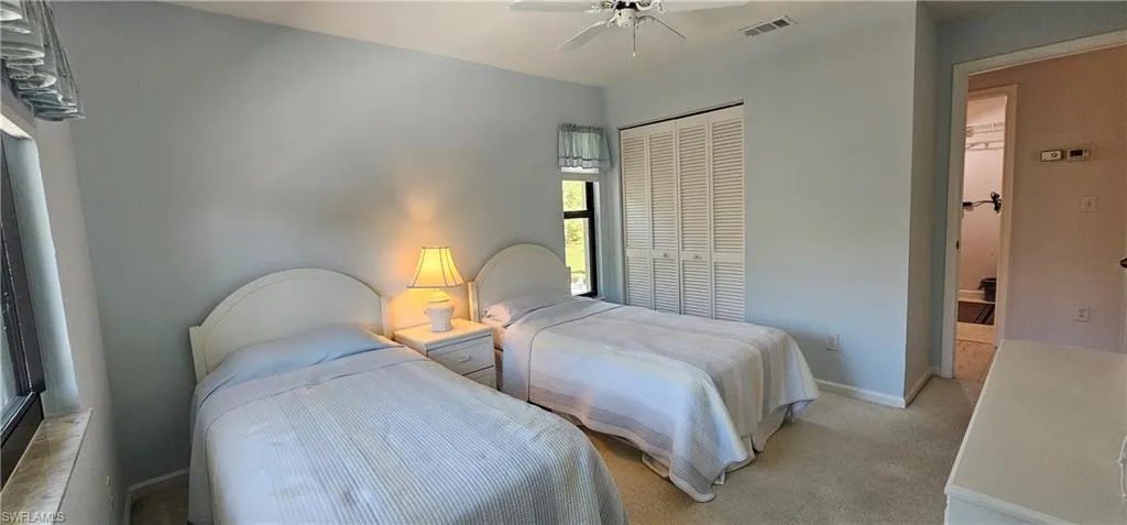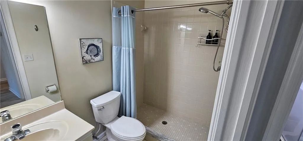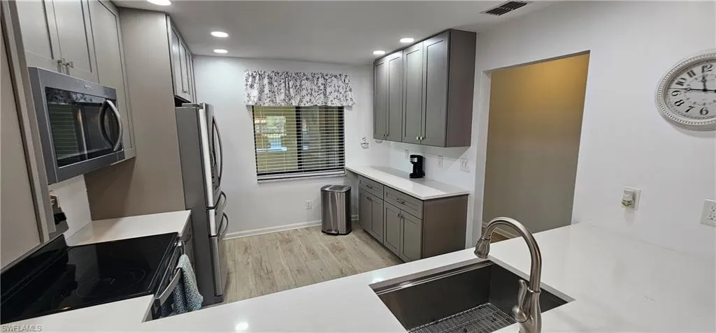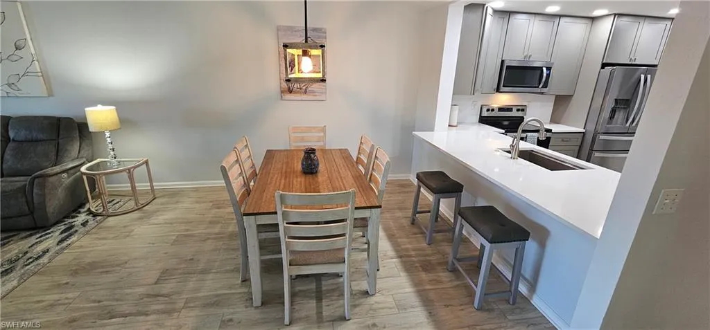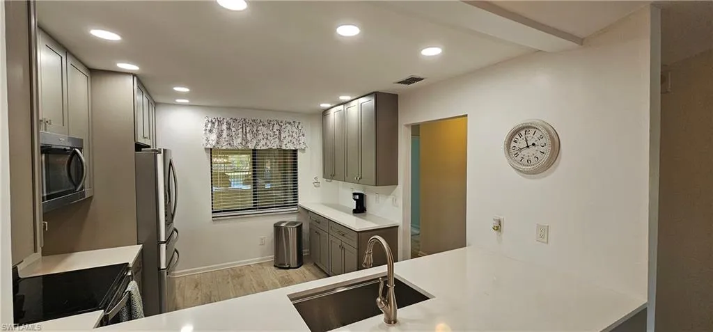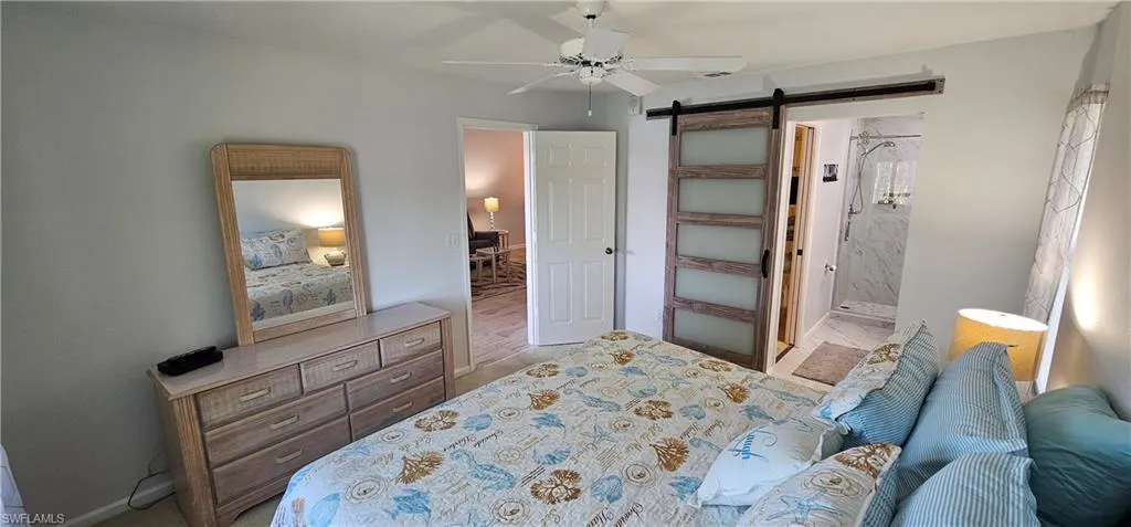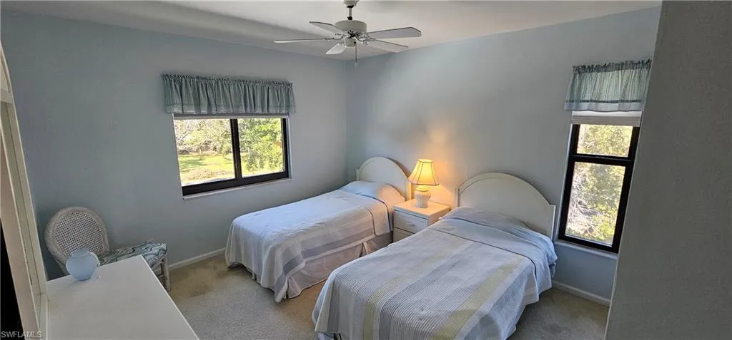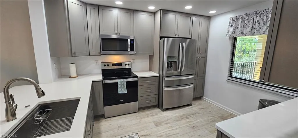 Enjoy living the southwest Florida lifestyle in this fabulously updated 3 bedroom 2 bath corner unit condo on the top floor with a stunning and expansive lakeview. Relax and unwind on your private screened lanai and watch the fish jump in the lake just outside. This 3rd and top floor home provides the new owner with peace of mind and comfort that there will be no noisy neighbors above you and boasts plank style tile flooring and high ceilings throughout the main living areas which provide an open and spacious feel to the home. The updated kitchen looks out over the main living area so you don’t miss any of the action and features stainless steel appliances and quartz counters. The roomy master bedroom suite features an updated private bath with a large tiled walk in shower and spacious walk in closet. There are 2 guest bedrooms perfect for hosting company or turn one of them into an office or den. Discover the charm of Deauville Lake Club which is ideally located just minutes to downtown, 5th Avenue shopping and dining and some of the finest beaches in Naples. Deauville offers 2 clubhouses, 2 pools, a spa, grills, tennis courts, shuffleboard and in a park-like peaceful setting with picnic areas and benches to sit and enjoy nature. This active community and membership offers dancing, water aerobics, bingo, card games, exercise classes, and for those with a creative flair, the philanthropic artist group offers a chance to indulge in artistic pursuits while contributing to the community. Recent updates have further enhanced the living experience at Deauville as the buildings now boast impact-resistant windows and sliders, new roofs, carports, and freshly painted exteriors. The modernized smoke alarms ensure safety, while the inclusion of cable and Wi-Fi in the HOA dues adds to the convenience of residents including poolside Wi-Fi.