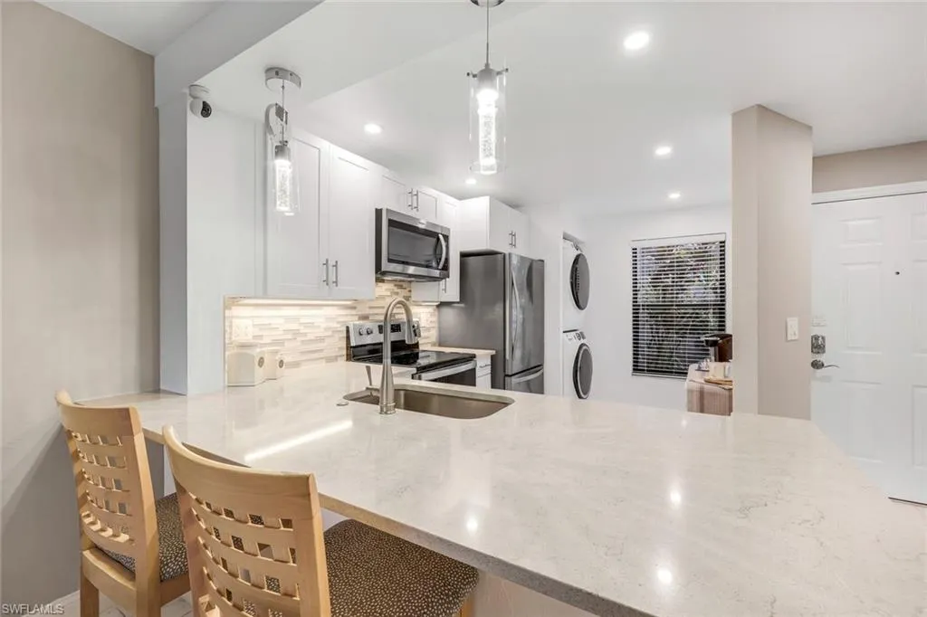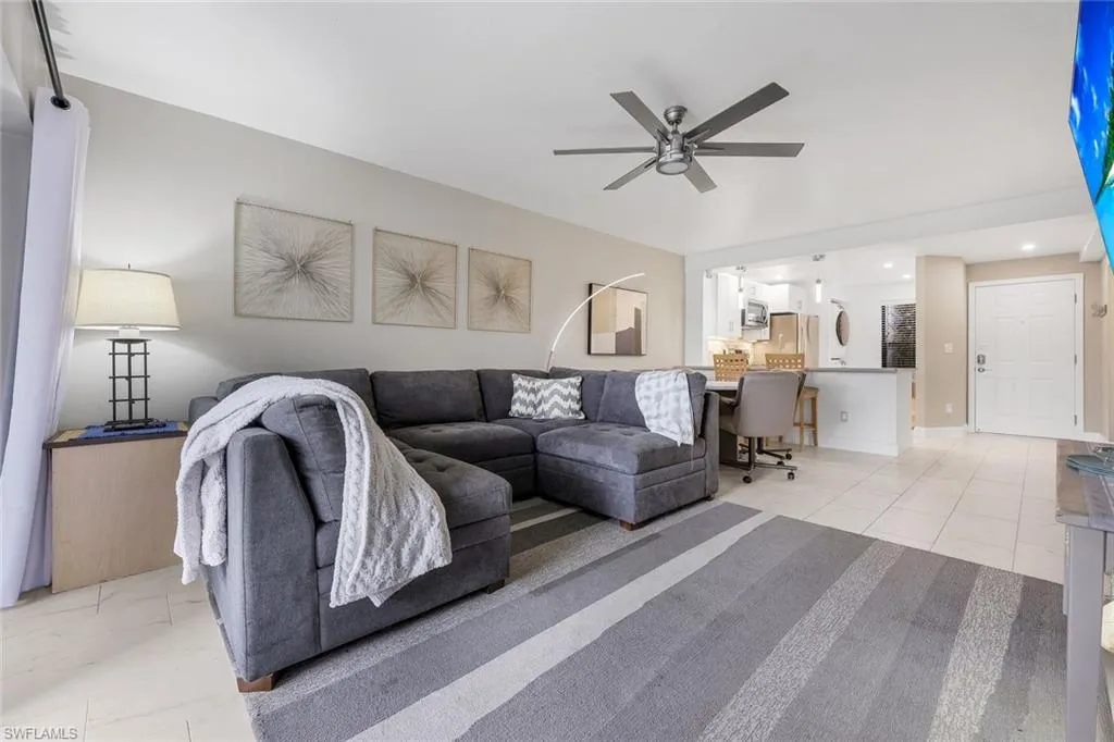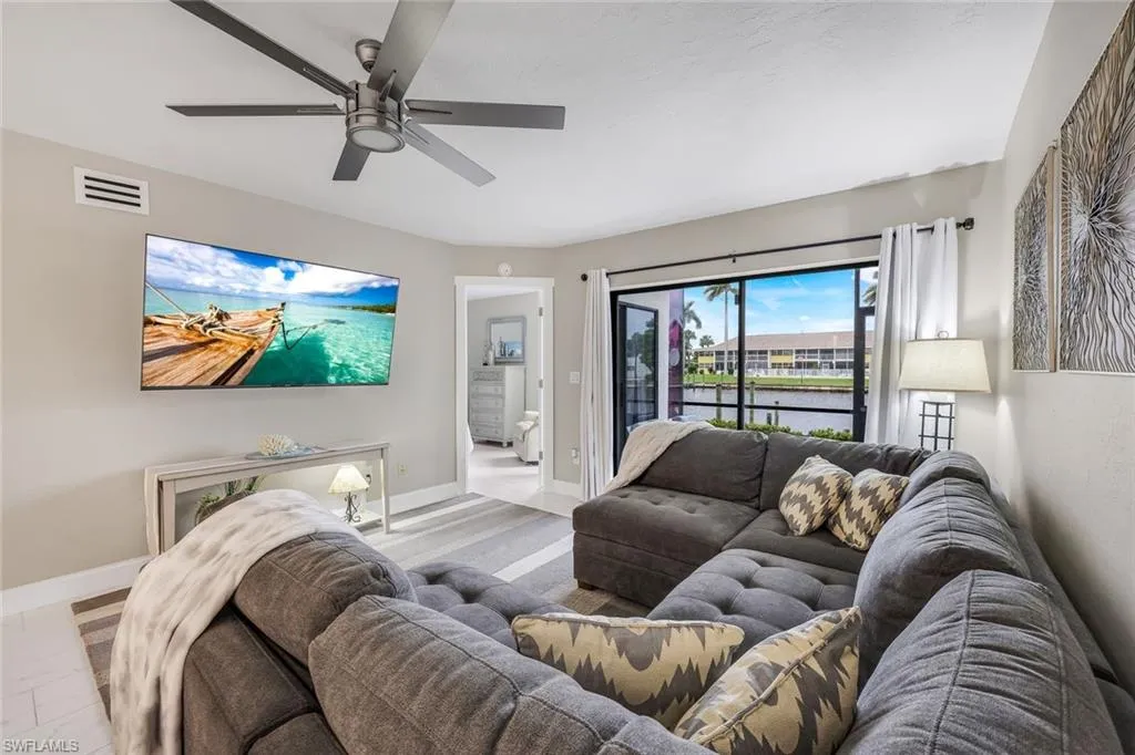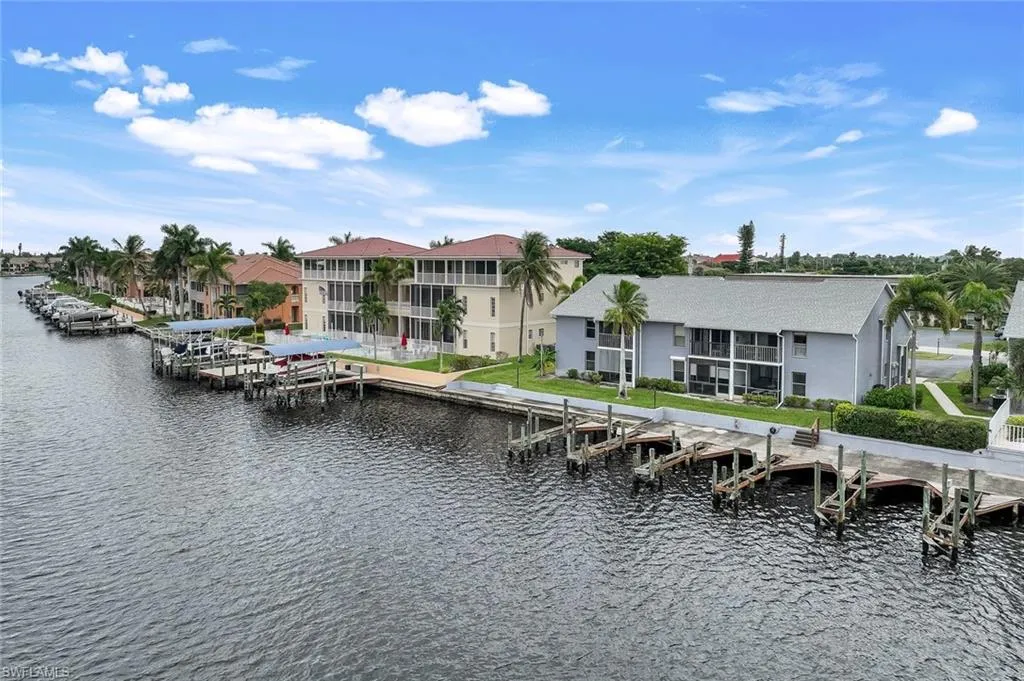 Completely remodeled first floor end unit with stunning water views! Experience true Southwest Florida living in this beautifully updated 2 bedroom, 2 bath condo located on the scenic Rubicon Canal with desirable western exposure, perfect for enjoying gorgeous sunsets over the water. Light and bright, this move-in ready condo is being offered turnkey and features an open floor plan with tile flooring throughout, a modern kitchen with quartz countertops, decorative backsplash, stainless steel appliances, and a breakfast bar. The owner’s suite offers 200 feet of canal views, private lanai access, a large walk-in closet, and an ensuite bath with a tiled walk-in shower. Enjoy the convenience of a designated covered carport space, a spacious outdoor storage unit, and community amenities that include a pool and a brand new roof. This quiet, well-maintained community is ideal for those seeking a relaxed waterfront lifestyle. The community is currently undergoing renovations for new docks and boat lifts. There’s still time to secure your own private lift, but you would need to act quickly. Centrally located in the highly sought after SE Cape Coral area, you are just minutes from Downtown Cape Coral, Cape Harbour, and Tarpon Point, as well as a short drive to Sanibel, Captiva, and Fort Myers Beach. Shopping, dining, medical facilities, and top rated schools are all close by. This condo is perfect for year round living, a seasonal getaway, or an investment opportunity and has never flooded! Call today to schedule your private showing!