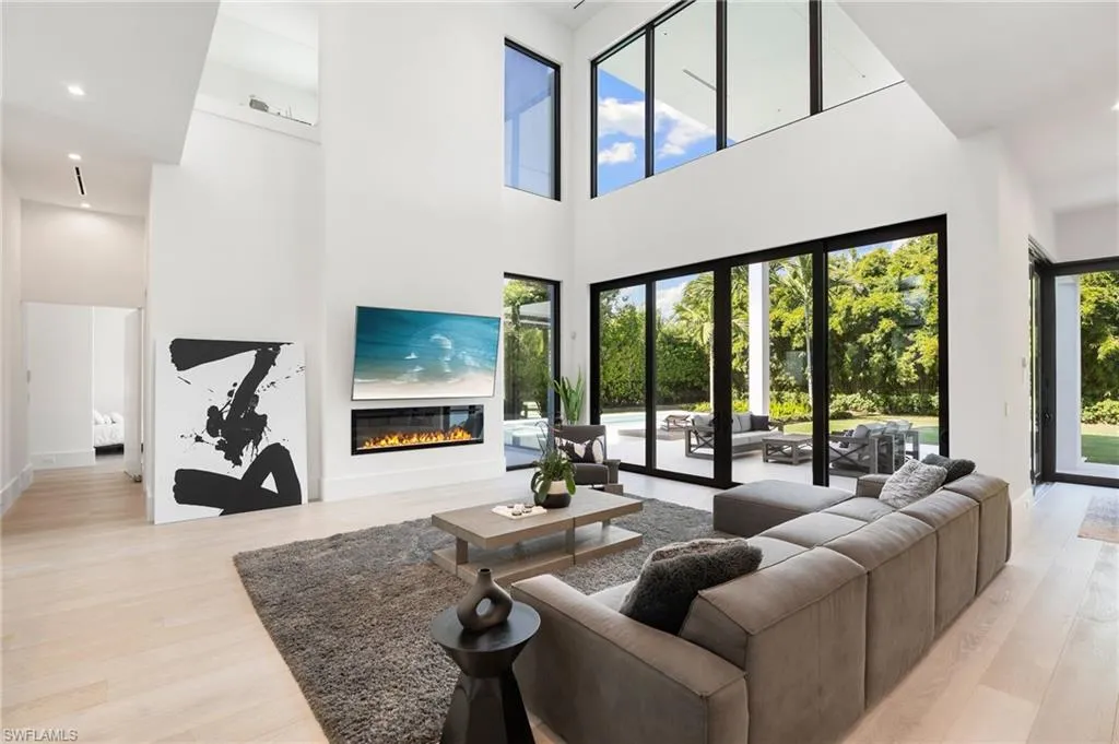 Perfectly positioned in the coveted Moorings neighborhood, this contemporary retreat masterfully balances form and function. Defined by clean architectural lines and sun-drenched interiors, the home embodies a minimalist’s ideal. Natural light pours across wide-plank oak floors, illuminating a gourmet kitchen outfitted with custom cabinetry and premium Wolf and Sub-Zero appliances—an elegant expression of understated luxury. Soaring ceilings amplify the home’s airy ambiance, while the easy flowing layout offers both privacy and flexibility. Dual primary suites—one on the main level and another upstairs—serve as serene sanctuaries, each featuring spa-inspired baths, dual walk-in closets, and convenient laundry access. Outdoors, a lush tropical backdrop framed by bamboo and a fruit-bearing mango tree sets the stage for the sleek modern pool and expansive yard—a private oasis ideal for quiet afternoons or stylish entertaining. With close proximity to downtown Naples and exclusive access to the Moorings Beach Park, this residence is the ideal full or part time residence.