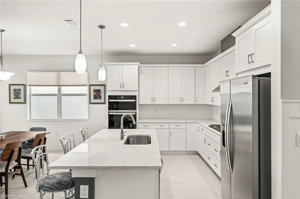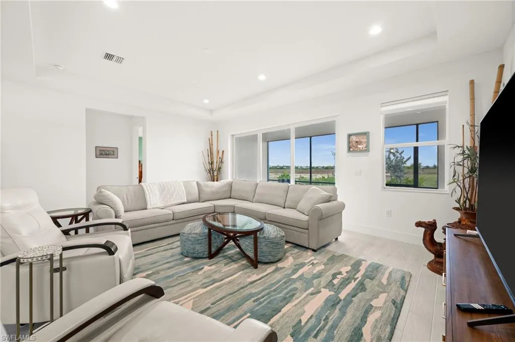 Located in The Regency of Babcock Ranch—the community’s only 55+ neighborhood—this stunning Harcourt model by Toll Brothers offers 3 bedrooms plus a den, 2.5 baths, and 2,272 sq. ft. of luxurious living space. Enjoy a full lake view with beautiful sunrise vistas right from your screened lanai. The home showcases upgraded plank tile flooring throughout (no carpet), impact glass windows and doors, and designer ceiling fans in every room and on the lanai. The spacious open-concept design includes a modern kitchen, elegant dining area, and an inviting great room ideal for entertaining. Additional upgrades include detailed trim work in the primary suite, wainscoting in the entry foyer, a custom built-in bench with coat hangers and storage in the drop zone, and a custom outdoor kitchen (installation scheduled for mid-November). The tandem garage offers extra storage space and features an 8-foot-high garage door—perfect for large vehicles or trucks. This home offers exceptional value—comparable new construction from the builder costs over $35,000 more without these high-end finishes and features. Built less than one year ago, this residence is move-in ready and perfectly positioned for those seeking an active, resort-style lifestyle. Residents of The Regency enjoy an exclusive amenity center featuring a zero-entry heated pool, poolside jacuzzi, tennis and pickleball courts, golf simulator room, fitness studio with daily exercise classes, weight room, locker rooms, and event and yoga lawns—all set against a scenic lakeside backdrop. A full-time lifestyle director curates activities and social events every day of the week, creating an unmatched sense of community. HOA fees conveniently include lawn care and high-speed internet for only $438 per month. Experience maintenance-free living and luxury design in one of Florida’s most vibrant 55+ communities.