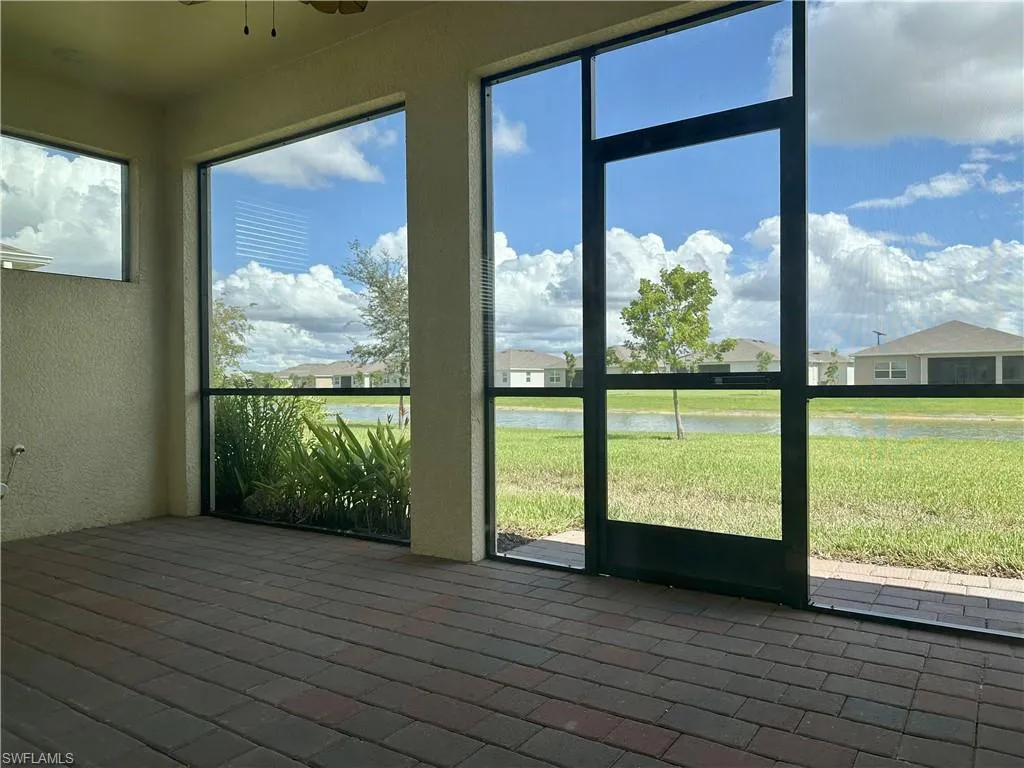 This house located at a unique lot with water view both in front of house and backyard. Large open living area makes the house more space for your family together. Gutters are installed around the whole house. Cove at West Port is a Gated coummunity in West Port area. 2 Full bathrooms, 2 bedrooms plus office room. LARGE SCREENED LANAI is place for your morning coffee. Upgrated kitchen has Granite countertops, stainless steel appliances. The french door den can be used as 3rd bedroom. It is not in FLOOD ZONE. It is close to shopping, dining, Centennial Park, school, beach… Community club house features a resort-style pool and fitness center. The landlord pays HOA. Tenants are free to maintains the yard and free to access to the clubhouse.