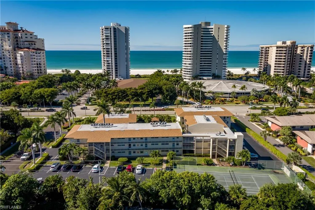 Fantastic opportunity to own a beautiful two bedroom two bath condo in the popular Mutiny of Marco just steps from Marco’s white sugar -sand crescent beach. Enjoy a peek-a-boo view of the Gulf from the Lanai. A pedestrian crosswalk with 24 hour beach access is directly across the street. Enjoy spectacular sunsets from this second floor end unit’s private lanai every night of the year! Rarely available in this well managed building, this immaculate condo is offered partially furnished and beautifully updated. The unit includes a washer/dryer, impact glass windows and doors, large closets and storage area. Mutiny of Marco offers a large heated pool and pool deck, tennis and pickle ball courts, an elevator, BBQ grill, an additional storage area, and assigned parking. The tropical landscaped pool area, tennis courts and beach access make this condo a perfect opportunity for vacationing or year around living. Located across Collier Blvd. from the JW Marriott and near restaurants and shops at the South end of the Island. Paradise priced perfectly!