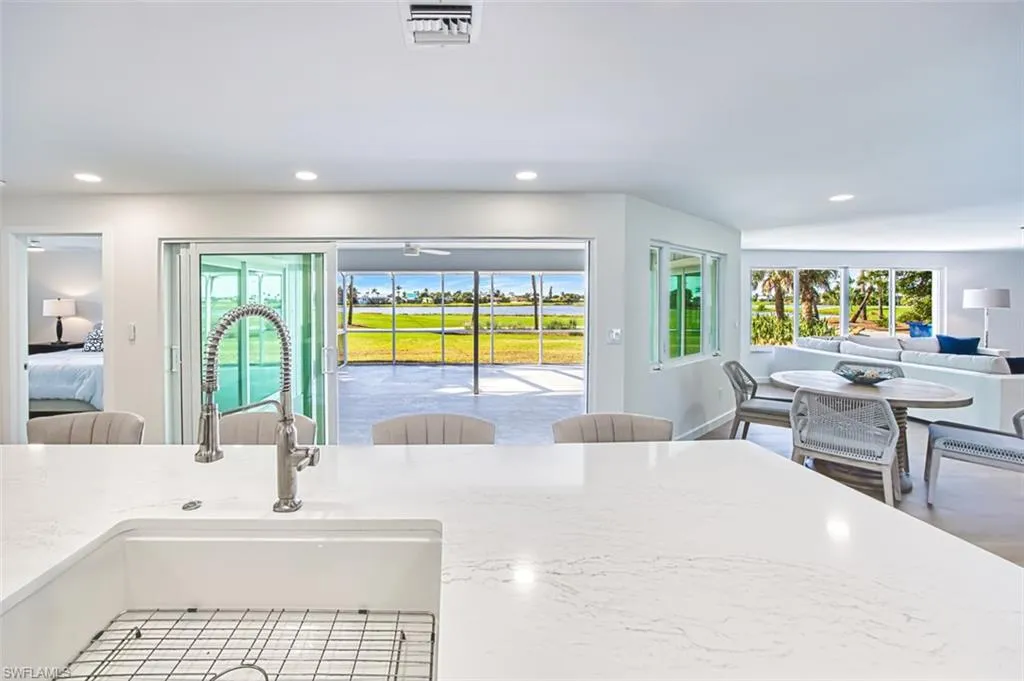 This fully reimagined and luxuriously updated 3-bedroom, 2-bath home in The Dunes blends refined design, modern infrastructure, and an effortless coastal lifestyle. Set on a premium southwest-facing lot along the 1st fairway – the closest home to The Dunes Golf & Tennis Club—it captures sweeping lake and fairway views that glow with spectacular sunsets – an everyday show that never repeats. With only one neighboring home and a backdrop of water, greens, and glowing skies, it offers both privacy and the kind of light-filled serenity that defines Sanibel living.