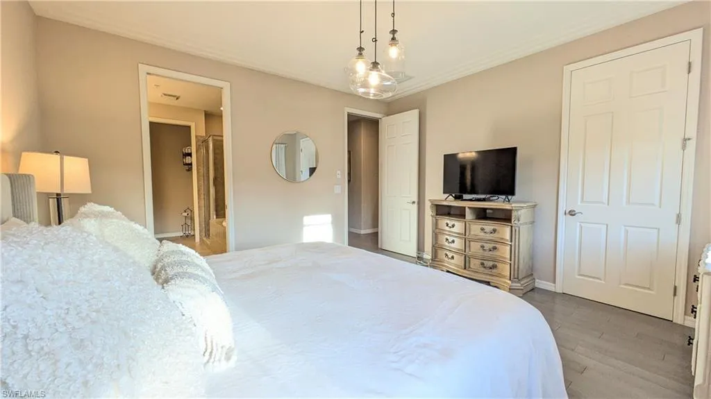 Ready for immediate occupancy: Experience the coveted Santa Cruz floor plan in Ole at Lely Resort! This immaculate 3-bedroom townhouse offers the ultimate in luxury and convenience, featuring no carpet throughout and a bright, white kitchen with stainless steel appliances. Enjoy indoor-outdoor living with a welcoming front porch and a screened balcony off the kitchen, complete with a retractable screen – perfect for enjoying the Florida breeze. This turnkey residence is ideally situated within one of Ole’s exclusive Quads, providing a semi-private pool, BBQ grills, and a relaxing sitting area just for quad residents. Inside, the spacious, multi-level design creates a unique and charming atmosphere. The gourmet kitchen boasts granite countertops and ample storage, ideal for any chef. Retreat to the luxurious owner’s suite, complete with a soaking tub, walk-in shower, and generously sized walk-in closet. Two additional bedrooms offer comfort and privacy for guests. The unit comes with a generous sized two-car garage with a 4′ by 15′ storage corridor and upgraded electrical panel for your EV-charger. Beyond your doorstep, Ole at Lely Resort offers an unparalleled resort-style lifestyle. Take a refreshing dip in the sparkling community pool with poolside food and bar service, socialize at the vibrant pub/restaurant with live DJ events, stay active in the state-of-the-art fitness center, or enjoy a friendly match on the tennis or pickleball courts. Walking trails and a private movie theater are just a few more of the fantastic amenities available. Located in the prestigious Lely Resort, you’re just moments away from the pristine beaches of Naples and Marco Island, world-class golf courses, and a wide array of shops and restaurants. This is more than just a home; it’s a lifestyle. Don’t miss this opportunity to own a piece of paradise in Ole at Lely Resort!