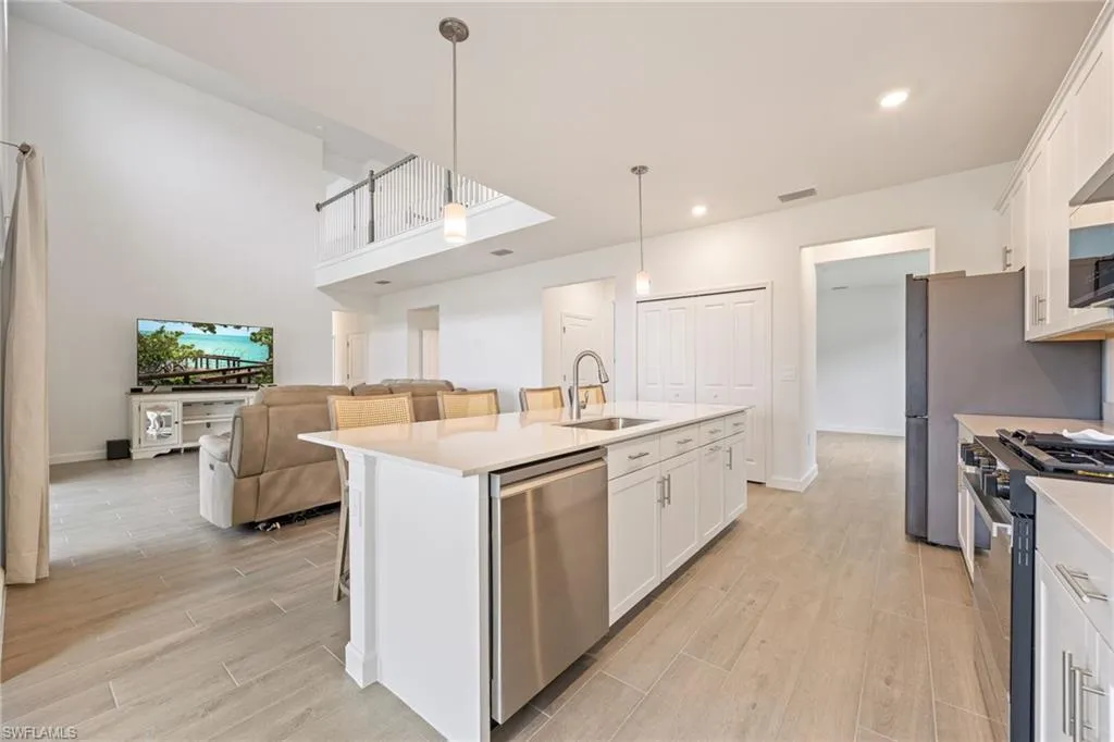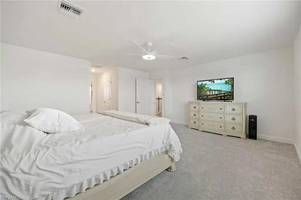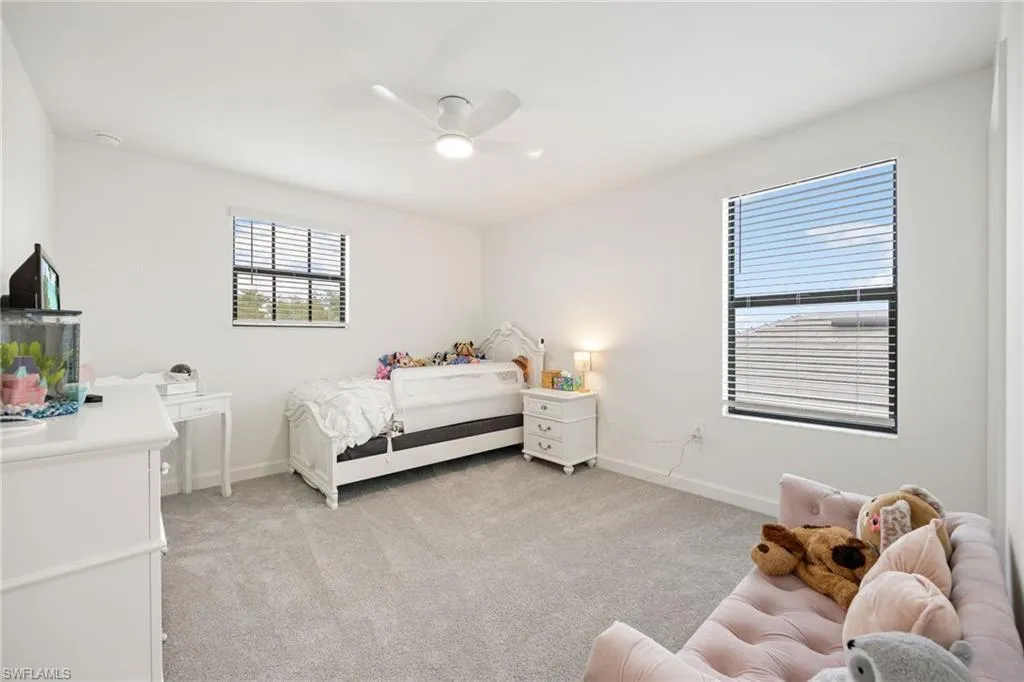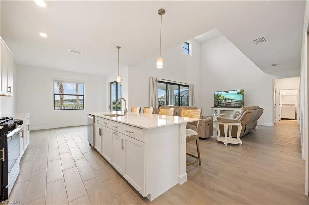 Welcome to this move in ready 5 bedroom and 4.5 bathroom home located in the highly sought after community of Verdana Village. This light and bright, two-story lakefront offers a fenced-in yard and SW exposure for some of the best sunsets SWFL offers. The main level of this home offers so much versatility with the amount of multi-functional space. Kitchen has upgraded gas appliances, eat in kitchen that overlooks the lake, oversized pantry and pass through to the formal dining area. First floor ensuite is perfect for guests or multi generational living. Under stair storage and laundry on the first level. Upstairs offers a spacious loft and the other four bedrooms. The oversized primary suite overlooks the lake and features a huge walk-in closet, dual vanities, a private toilet room and large shower. There’s room for a pool and plans are available! As a resident of Verdana Village, you’ll get to enjoy a resort style pool and spa, full fitness center, yoga room and lawn, indoor and outdoor pickleball and tennis courts, basketball, dog park, playground, restaurant, craft beer lounge and cafe. This golf cart-friendly allows you to ride to the amenity center or just outside the gates to The Shoppes at Verdana Village, where you’ll find Publix and more. All of this and you are only a short drive to I-75, Miromar Outlets, RSW Intl Airport and much more! Estero is centrally located between Naples and Fort Myers so the opportunities for shopping, dining and the beaches are at your fingertips!