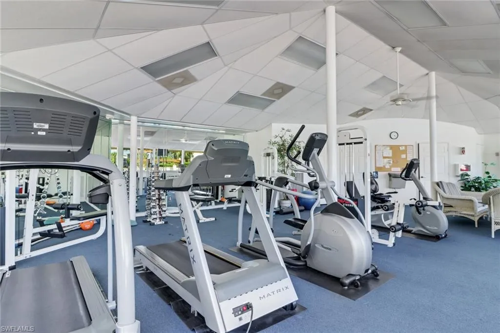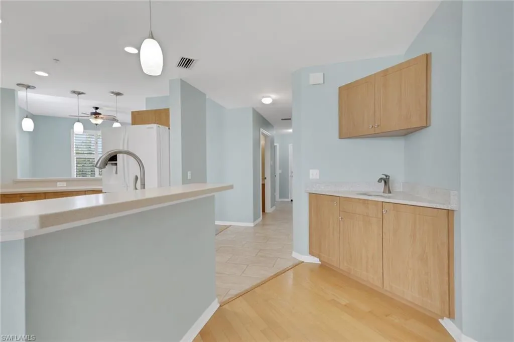 2nd Floor End unit over looking the community pool and the park next door. The City of Cape Coral just cleared all the invasive exotics from the old Golf Club, and it’s on it’s way to becoming a 175 acre park. This updated 2 bed plus den unit has recent upgrades include Impact Glass Windows, Storm Smart Kevlar roll downs on the lanai, and classic plantation shutters. The extra windows on the end fills the condo with natural light. Spacious kitchen with plenty of cabinets for storage, and separate wet bar for entertaining. The spacious lanai is a great place to enjoy the weather. Primary suite features walk in closet with custom built in shelves, dual sinks, walk in shower with frameless glass door, and private water closet. This home is very well maintained with newer paint, Water Heater. Real hard wood floors give the home a warmer feeling. Additional secure outside storage room is close by. Banyan Trace is a gated community close to down town Cape Coral with large community pool, separate hot tub area, fully equipped fitness center, pickleball/tennis courts. This community follows the updated Florida condo regulations, with comprehensive reserve studies completed, reflecting its 100% funding compliance. This unit has dedicated cover parking spot, and conveniently has one of the largest guest parking areas.