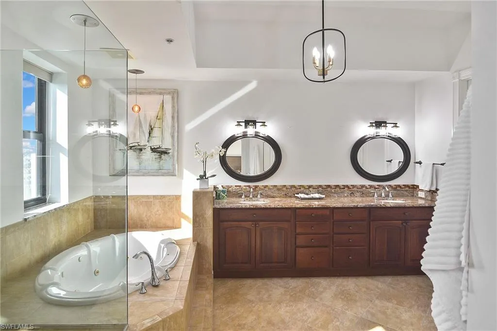 Palmas Del Sol’s luxurious high-rise living awaits in this stunning 8th floor unit offering a 3 bedroom, 2.5 bath end-unit. With over 2555 sq ft with abundance of natural light throughout. Enjoy the panoramic views of the Caloosahatchee River, a lake and the meticulously maintained golf course, perfect for those seeking an upscale lifestyle. Discover luxury living in this magnificent residence with the expansive primary suite, complete with custom cabinetry, picturesque water and golf views, and spa-like ensuite. The spacious great room, complete with a wet bar, opens to a waterfront lanai, providing an ideal space for entertaining or relaxing while enjoying amazing sunsets. The kitchen boasts 42-inch cabinetry, and stainless-steel appliances, granite counter tops catering to both chef enthusiasts and casual dining. Adjacent to the kitchen, the formal dining area or enjoy a morning coffee looking out over the river from the breakfast nook. Additional highlights include tray ceilings, crown molding, solid core doors, electric storm shutters, and impact-resistant windows, a 2 car under building private garage. This property is ready for you to start living the Florida life. Gulf Harbour Yacht and Country Club is one of Fort Myers most desirable communities with state-of-the-art amenities with private memberships available including golf, spa and a deep-water marina with slips available for lease or purchase.