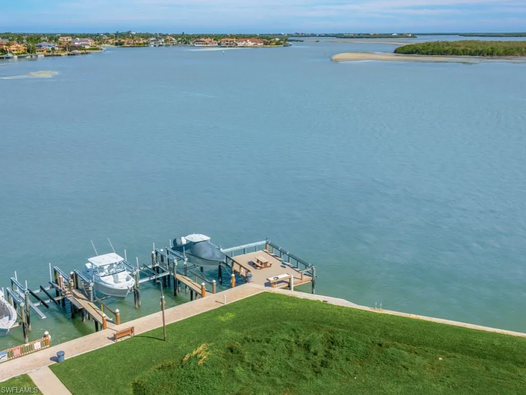 Magnificent views of the Gulf and Ten Thousand Islands abound from this beautiful 2 bedroom, 2 bath residence located on the desirable Southend of Marco Island. This gorgeous Shipp’s Landing residence features a great room floor plan with custom wet bar, plantation shutters throughout, and ample natural light. The kitchen is complete with breakfast bar, timeless granite counters, white cabinetry, and stainless appliances. The master suite features breathtaking views, private second terrace, two walk-in closets, and spacious ensuite bath with dual sinks and frameless glass walk-in shower. The additional guest bedroom with access to the main terrace provides plenty of room for friends and family. The spacious, main terrace overlooking the sparkling blue waters of the Gulf is the perfect place to relax while enjoying the gentle island breeze. Impact rated sliders and hurricane shutters provide extra peace of mind and protection. This well-maintained residence features thoughtful details and finishes throughout. Shipp’s Landing has world class amenities including a private beach, three resort-style pools and spa, tennis courts, pickle ball courts, fitness center, fishing pier, marina with boat slips available, grilling areas, and a clubhouse for social gathering. This lushly landscaped complex is a short distance to the South Beach Entrance and Caxambas Park and Boat Ramp.