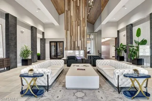 Live The Naples Lifestyle”-Your Dream Home Is Here! Discover the epitome of luxury living in this beautifully upgraded “BELLISIMO”coach home located in the Heart of Naples. Spanning 2,343 SQ.FT.(NO CARPET) featuring 3 bedrooms, 2.5 baths, a large private lanai with “NO ROOF TOPS” in VIEW and a 1-CAR ATTACHED GARAGE. Master Bedroom and two hall bathrooms were just freshly painted. This charmer boasts an open concept floor plan perfect for both everyday living and entertaining. 10-foot ceilings with recessed LCD lighting and elegant crown molding create an airy, sophisticated atmosphere throughout. The spacious kitchen is a chef’s dream opens to family room, equipped with upgraded 42” white shaker wood cabinetry with soft close and some glass doors, pull-out shelving, stunning Cambria quartz counters throughout, upgraded stainless-steel appliances, and a large center island for added seating featuring a wine cooler and cabinets below for added storage. Adjacent to the kitchen is a separate oversize dining room with custom mill work, ideal for hosting memorable dinners with family and friends. The expansive great room is truly a showstopper, showcasing a custom-built marble tile wall with a linear remote-controlled fireplace, adding both warmth and style to your living space. From here, step out to enjoy the breathtaking views of the gorgeous wide and unobstructed lake and preserve views—a serene backdrop that brings nature and tranquility right to your doorstep. Nestled in a prestigious gated golf course community in North Naples, you’ll have access to fabulous amenities that enhance the luxury lifestyle. This stunning second floor coach home includes a CLUB/SPORTS/MEMBERSHIP giving full access to all of Esplanade’s Golf and Country Club amenities including limited golf opportunities. The convenience of a one-car garage with an epoxy floor covering completes this exceptional offering. RELAX by the 2-NEARBY NEIGHBORHOOD POOLS! Don’t miss out on the chance to own this meticulously designed and luxurious coach home in one of Naples’ most sought-after prestigious communities! This luxurious coach home is loaded with premium upgrades, including HURRICANE IMPACT WINDOWS and DOORS for added peace of mind, ensuring your safety and comfort in all seasons, plantation shutters on all windows, custom master closet and pantry shelving, a remote operated lanai sunshade, 3 televisions with attached sound bars, 2 island bar stools, and many more updates to list! Esplanade Golf and Country Club is a prestigious amenity rich gated golf course community in North Naples. True resort pool with cabanas & poolside “Bahama Bar”, 15,000 Square Foot Clubhouse, Tennis, Pickleball, Koquina Day Spa, 2 Dog Parks, 14 Miles of Trails for Biking, Jogging, or Walking, 18 Hole Private Course, Fitness Center, Restaurant, Bar, Wine Tasting Room, Private Wine Lockers, and Cafe. Esplanade is centrally located and minutes to Vanderbilt Beach, Mercato, Waterside Shops, Restaurants & more!