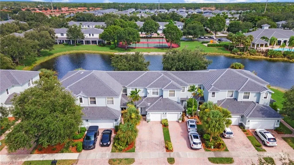 Enjoy peaceful lake views from this well-maintained townhome featuring a new roof with the assessment fully paid. The extended screened lanai is ideal for morning coffee or relaxing in the evenings while taking in the water views. Inside, the home offers an inviting open layout with a bright white kitchen, pantry, breakfast bar, and seamless flow into the dining and living areas. French doors open to the lanai, creating an easy indoor–outdoor feel. Plantation shutters, tile flooring downstairs, and warm luxury vinyl plank flooring upstairs tie the spaces together beautifully. The upstairs owner’s suite features coffered ceilings, a walk-in closet, and a refreshed bathroom that includes an updated frameless glass shower. Two additional bedrooms and a full guest bath provide comfortable space for family, guests, or a home office. A spacious laundry room with extra storage and an attached one-car garage adds everyday convenience. Located in a gated community with resort-style amenities—pool, fitness center, tennis, basketball, playground, and more—this home also offers quick access to Founders Square, top restaurants, grocery stores, golf, and area hospitals. A wonderful opportunity to own a move-in-ready home in a desirable North Naples location.