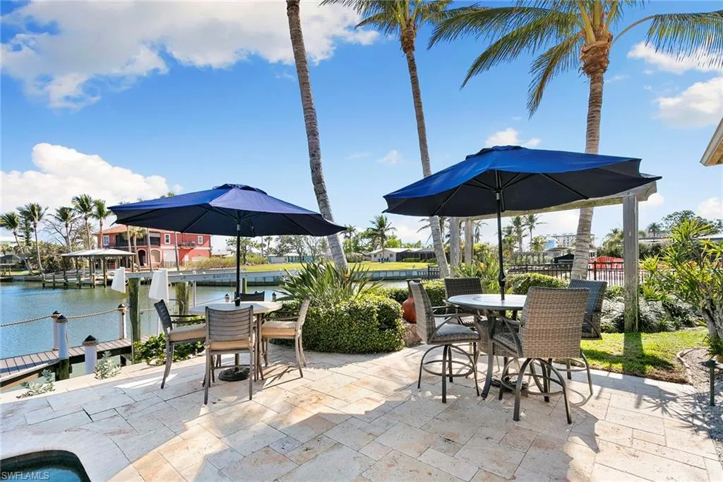 Luxury waterfront living on Fort Myers Beach, a boater’s dream with breathtaking views. Tucked away on a deep-water canal with unparalleled long-water views, this stunningly renovated coastal retreat offers the ultimate blend of privacy, luxury and gulf access. Imagine waking up to the sight of dolphins gliding through the water and spending your evenings watching the sunset from your expansive dock and platform, ideal for relaxing by the water or launching your kayak for an easy paddle to the Calusa Blueway. Enjoy the expansive outdoor living spaces, ideal for relaxation and entertaining. Take a refreshing dip in the sparkling pool, complete with a custom rock waterfall, or unwind in the covered outdoor area designed for year-round enjoyment. Step inside to a thoughtfully redesigned interior, where every detail has been curated for elegance and comfort. Quartzite countertops flow throughout, complementing the luxury tile flooring that enhances the home’s airy, modern aesthetic. The chef’s kitchen, powered by a propane tank, ensures effortless entertaining with high-end appliances including a Wolf range and generous prep space. Custom trim details, volume ceilings, and impact-rated windows and doors add sophistication and peace of mind. With three bedrooms and three baths, this home is ideal for those who appreciate style and functionality. Updates include a new HVAC, tankless water heater, new electrical panel, outdoor shower and foot wash, a newer pool heater, stone paver pool deck, new Trex composite deck with double-wide platform with electric and water, fish-cleaning station and an operating boat lift, making waterfront living a breeze. In the sought-after mid-island neighborhood of Holiday Heights, this property is just minutes to the beach yet offers a private escape from the crowds. Whether you’re an avid boater, a nature enthusiast or simply seeking a serene coastal sanctuary, this home proves you can have it all. Don’t miss your opportunity to own this rare piece of paradise. This home had no water intrusion during 2024 storms.