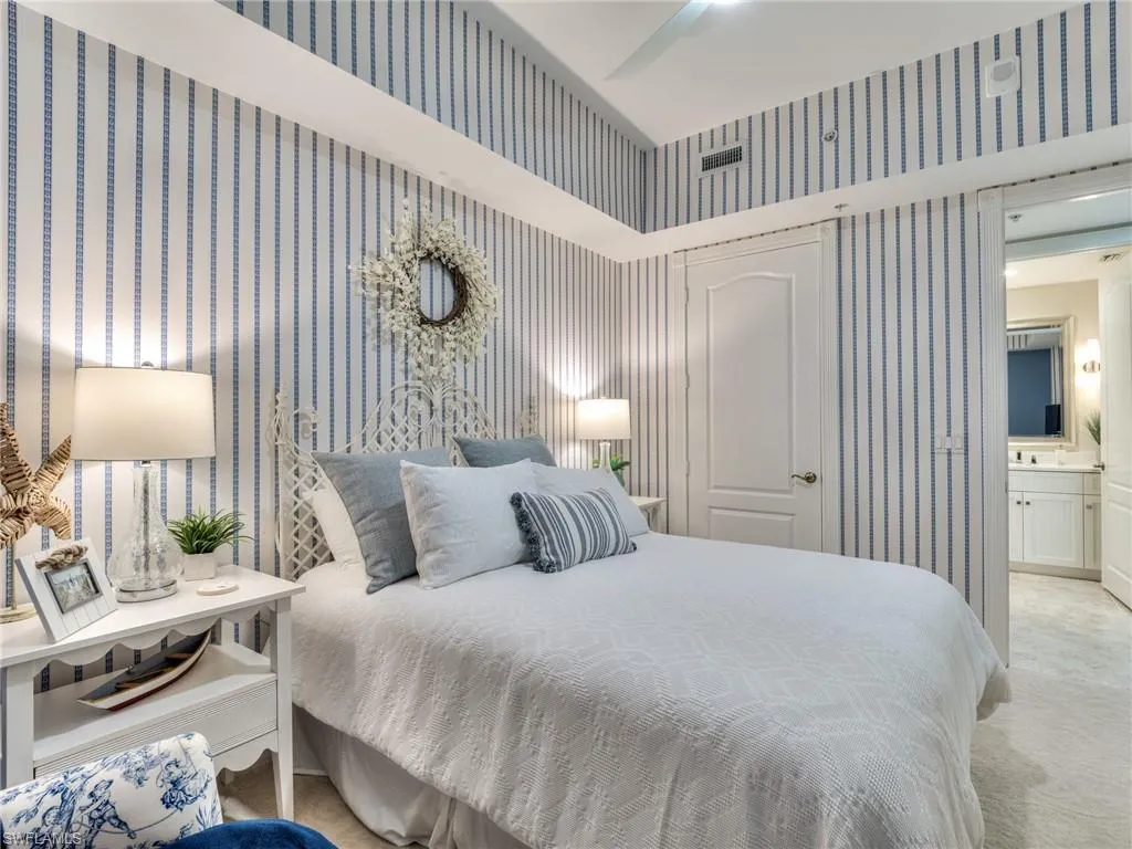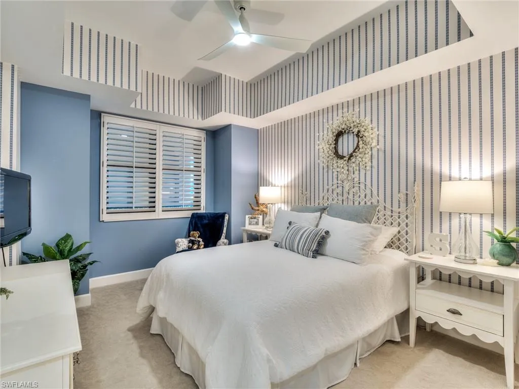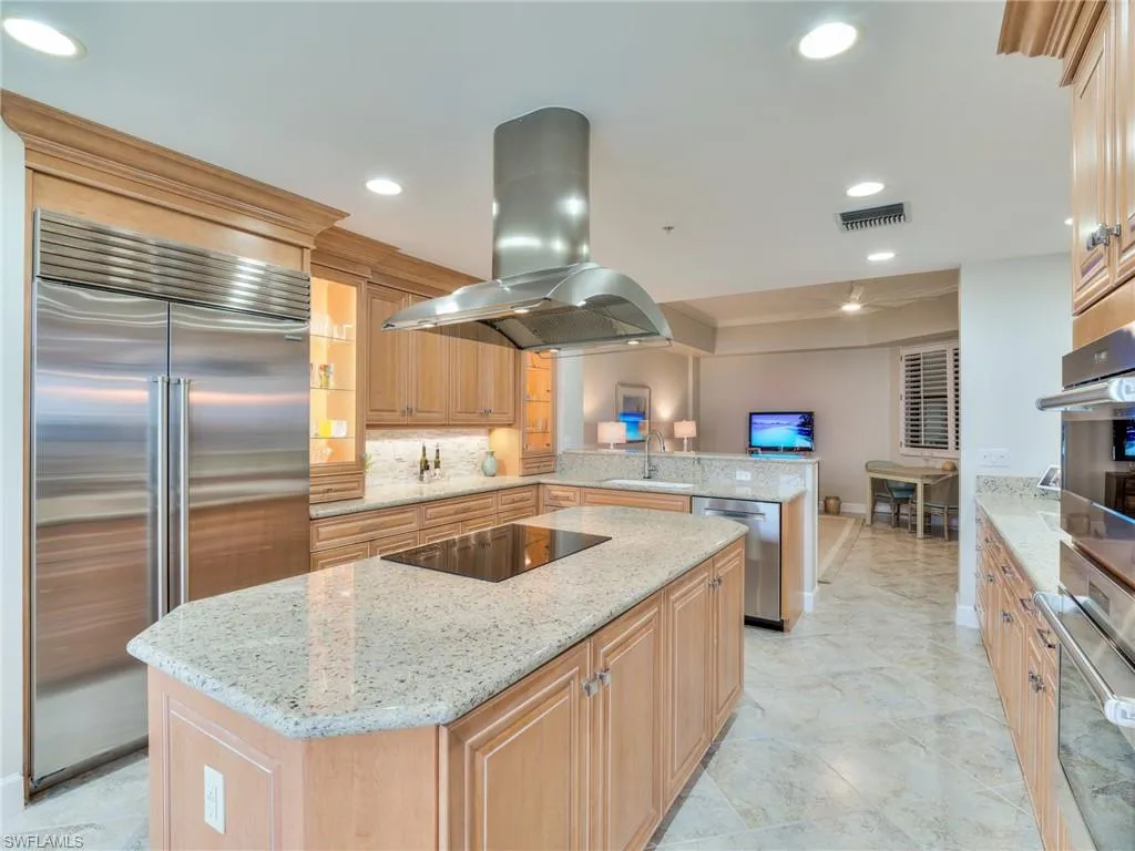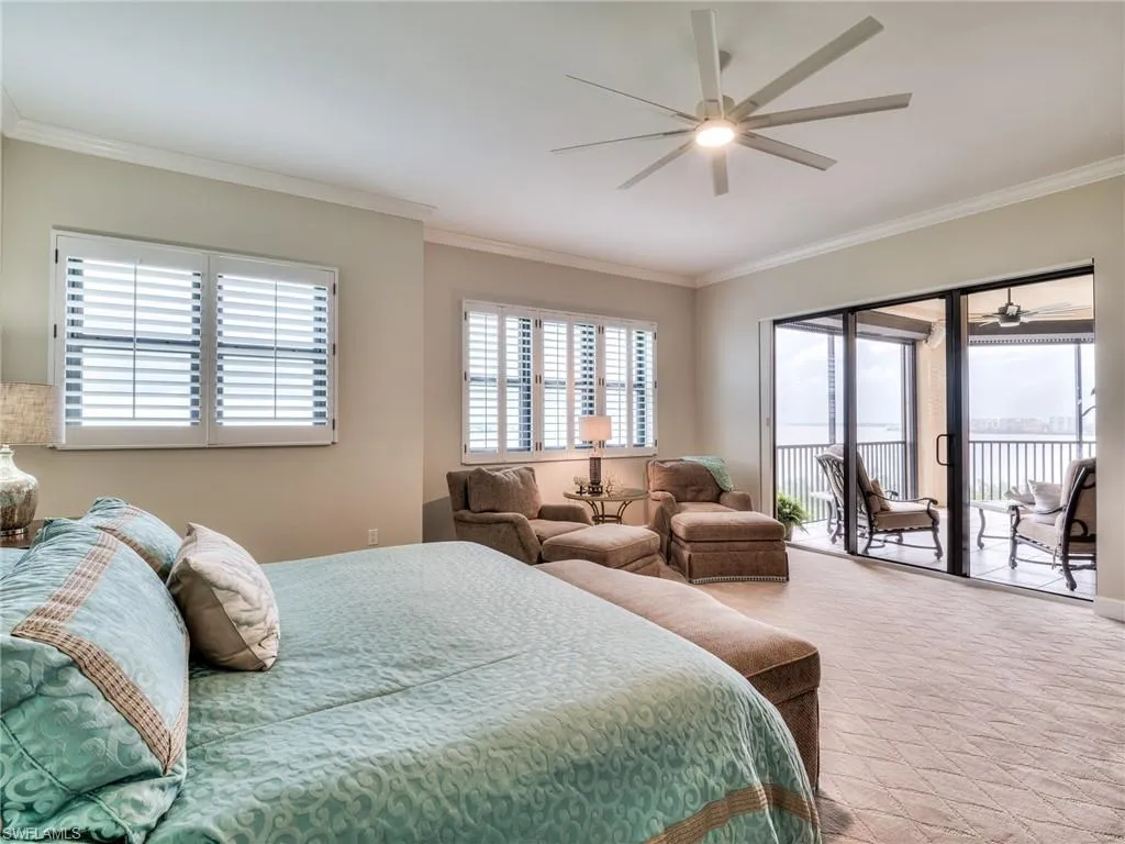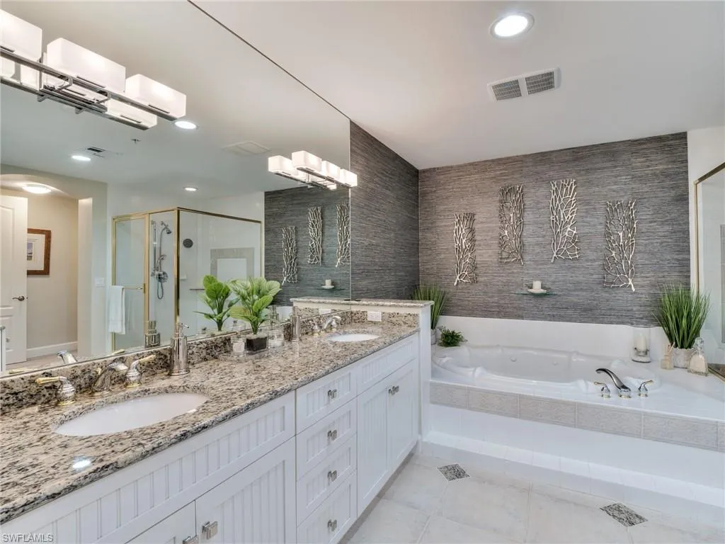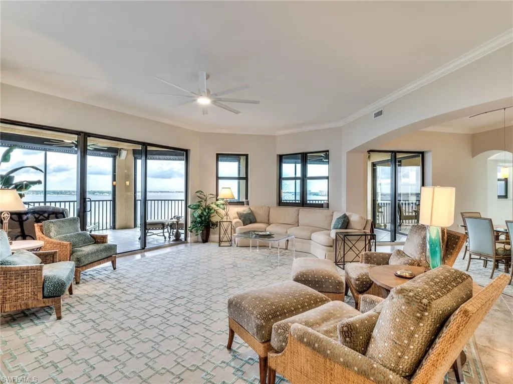 Stunning 6th Floor Castille in Palmas Del Sol. A must see property offering 10″ ceilings, 3 bedrooms, 2.5 baths totaling over 2800 sq ft. Recently renovated with impact rayed custom iron front entry door, diagonal porcelain tile, new impact windows throughout, stunning kitchen with pull out & soft close, Sub Zero refrigerator, and considerable pantry. The oversized primary suite offers river views, large sitting area, separate shower an d soaking tube, and large walk-in closet with custom built-ins. The expansive lanai includes electric roll down shutters and provides picturesque sunsets with views to the west, north & east. Unique to high rise living, included with this unit is an oversized two car garage with space for a golf cart and vertical storage lift located on the first floor. 186 slip deep water Marina with slip available for lease or purchase. Some amenities herein available but not offered. Sq Ft approximate or from Lee County Tax Data.
