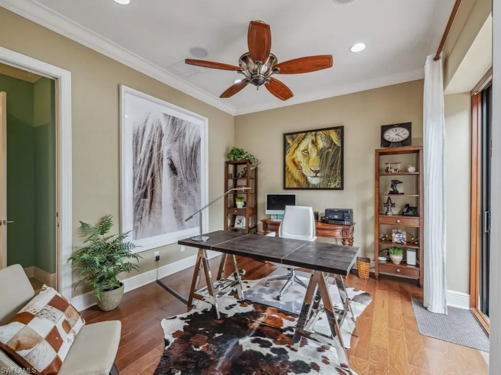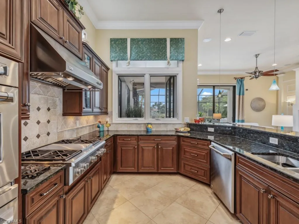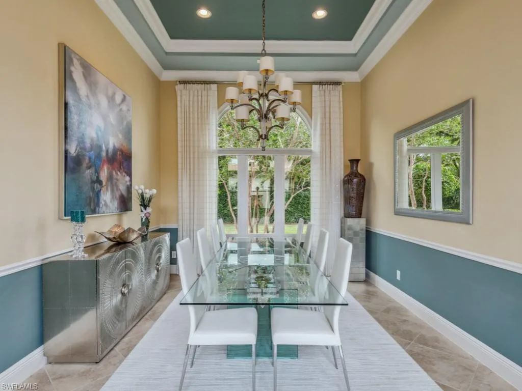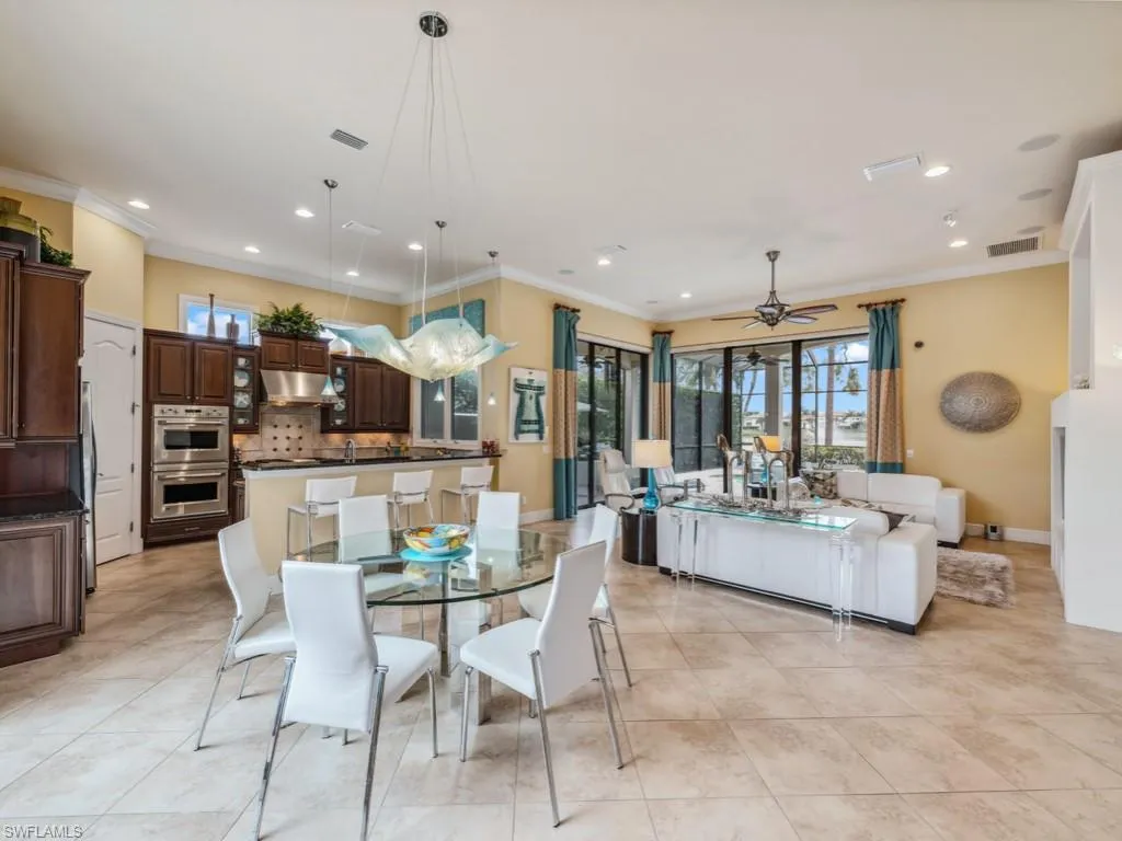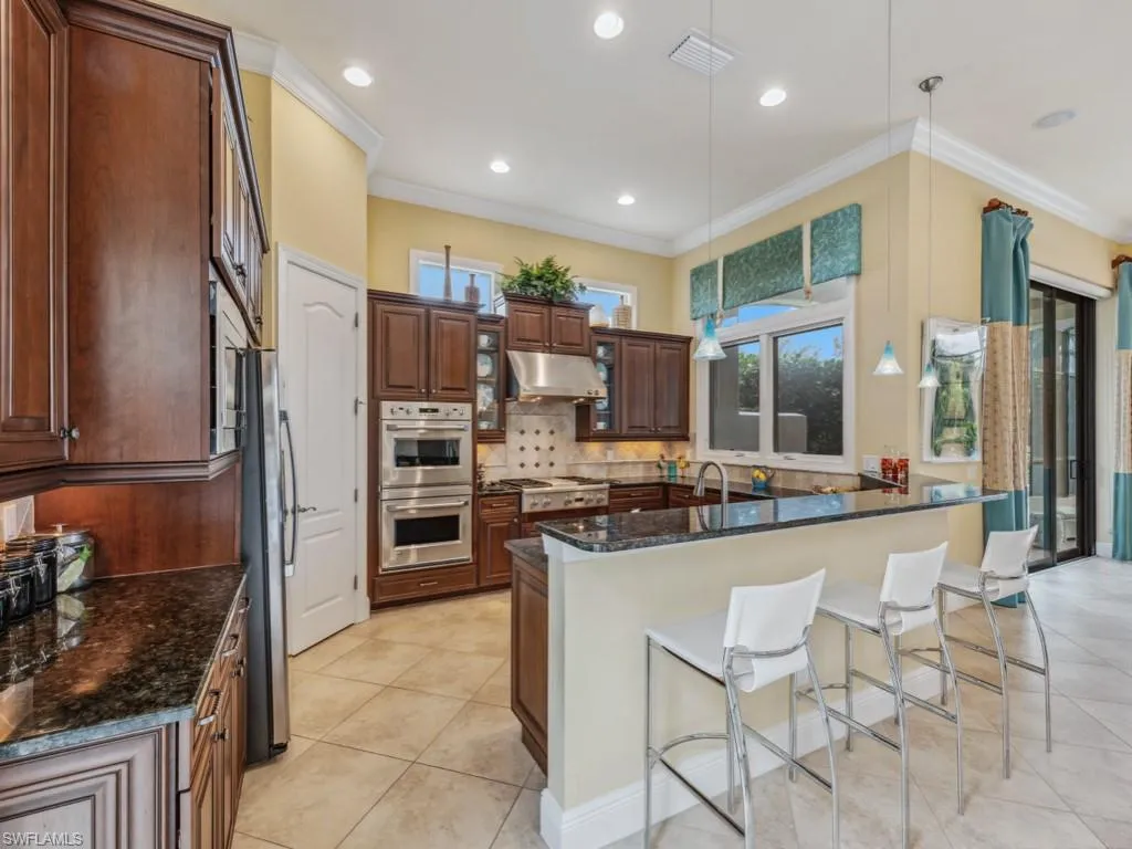 Located in the beautiful Mediterra Golf & Country Club of Naples that offers a newly renovated private beach club for residents – This stunning home combines refined architecture with modern luxury, starting with the striking curb appeal with lush landscaping, lakes with fountains both in front and behind the house, and the spacious paver driveway, which leads past iron gates and stone-accented pillars into a private courtyard entry. The foyer emphasizes an open and welcoming atmosphere with soaring ceilings, arched passageways, and gentle, neutral tones. The sunlit den is located just beyond the foyer, which functions as a private office with courtyard access through tall sliding doors. The formal dining room exudes style & sophistication with a beautiful glass table and tasteful contemporary décor. The main living areas accommodate open-concept design, allowing seamless flow between spaces, incorporating modern design elements, stylish furniture, and abundant natural lighting through the wall of tall glass sliding doors connecting the Living and outdoor spaces. The Gourmet kitchen is full of light with a private courtyard adjacent and features a walk-in pantry, premium Monogram appliances, beautiful wood cabinetry, granite countertops wrapped around the gas cooktop, double wall ovens, and a breakfast bar. Just a few steps from the kitchen is a convenient bar with its own wine cooler, perfect for entertaining. The primary suite is indulgent, with two walk-in closets, private outdoor access, a quiet sitting area, and a spa-inspired bath equipped with a separate tub & shower, dual vanities, modern fixtures, and tasteful finishes. The guest bedrooms are spacious and well-appointed, with contemporary décor, large windows, and en-suite bathrooms. The large screened outdoor area is the perfect gathering space to soak in those sunny days. A generous-sized pool & spa are the centerpiece. It includes an outdoor kitchen, dining space, and lounge seating, creating a perfect oasis for relaxation & entertainment with the delightful backdrop of vibrant landscaping and a sparkling lake in the backyard. Mediterra is a prestigious luxury golf & country club community featuring Two championship Tom-Fazio golf courses for avid golfers, multiple tennis courts, pickle-ball & bocce, fitness center, pristine bike & jogging trails, and luxurious dining at the private country club restaurant. The Mediterra Beach Club offers an escape to a 10,000 sq. ft two-story private oceanfront paradise on the Gulf of Mexico. Featuring a restaurant & bar that serves members via indoor & outdoor dining, this private facility boasts a heated swimming pool, a sundeck, and cabana beach service for chairs, umbrellas & refreshments.