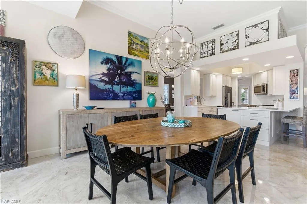 This gracious Island Walk home is the extended Carlyle model, boasting 2687 sq ft of living space under air. Walk in the front door and be blown away by the expansive feel of the 12 ft ceilings with a view through the house to the pool and lake beyond. The home has an open concept kitchen/family room with new cabinetry and counter tops, and contemporary built ins; large format polished travertine tile flooring throughout; custom window treatments; custom salt water pool and lanai with a lovely southern exposure lake view; meticulously maintained landscaping; spacious front porch, freshly painted exterior and a brand new roof. Together with its 4 bedrooms, 3 upgraded baths, as well as formal living and dining rooms – the layout of this home is flexible to meet all of your needs and beyond. Accordion and electric storm shutters make hurricane prep a breeze. Garage has built in storage and an epoxy coated floor. Warm and inviting with many luxury finishes, this lovely home is beautifully appointed with high end furnishings, which are available to purchase, if you desire. It’s a must see!