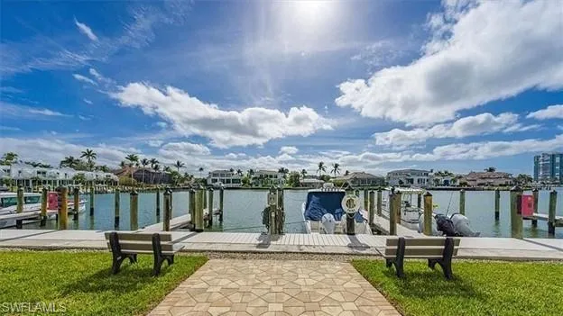 Calling all beach lovers, BOATING enthusiasts and discerning buyers! Luxury living at its best! PRIVATE BOAT DOCK INCLUDED right outside of your lanai. Gulf access and beautiful bay views! This stunning condo is totally renovated, beautifully furnished and immaculate. New tile flooring throughout. Beautiful kitchen with all new stainless steel appliances, quartz counters and lovely back-splash. Ideal floor plan with en-suite master bedroom and private guest room. Brand new tile bathrooms. New in-residence washer and dryer. This condo is move-in ready and shows Brand NEW! Impact bedroom and kitchen windows. New automatic hurricane electric lanai shutters. Relax on the screened lanai while watching the dolphins jump and the pelicans diving for fish! Swim in the bayside pool with breathtaking views and outdoor kitchen and bar. Enjoy the second floor sun deck overlooking the pool. Fish from your private dock. Perfect location. Walk over the bridge to Park Shore’s private membership beach, upscale shopping and fine dining at Venetian Village. Take a short drive to all of the best Naples has to offer…Downtown 5th Avenue, Third Street, Waterside, and Naples Artis. Pets Allowed. Proudly unaffected by hurricane Milton. Naples living at is finest. Yes, you can have it all!
