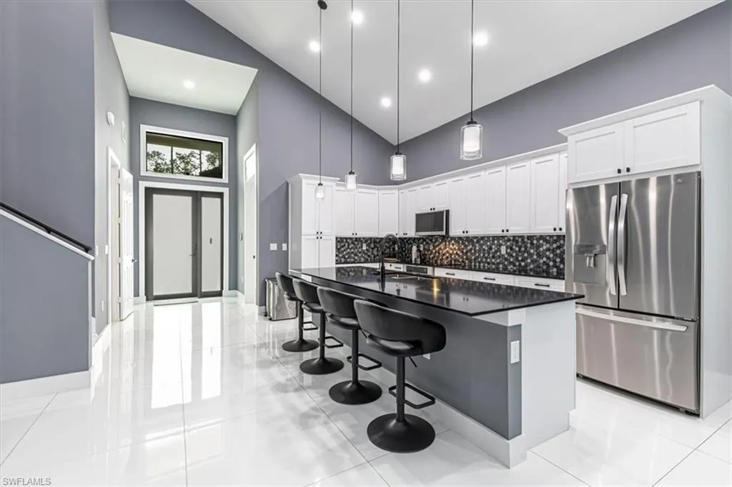 From the moment you arrive, you’ll be captivated by the home’s sleek architecture, expansive paver driveway, and lush surroundings that back up to a peaceful preserve for ultimate privacy. Inside, soaring ceilings, and polished porcelain tile floors create an open and airy atmosphere filled with natural light.