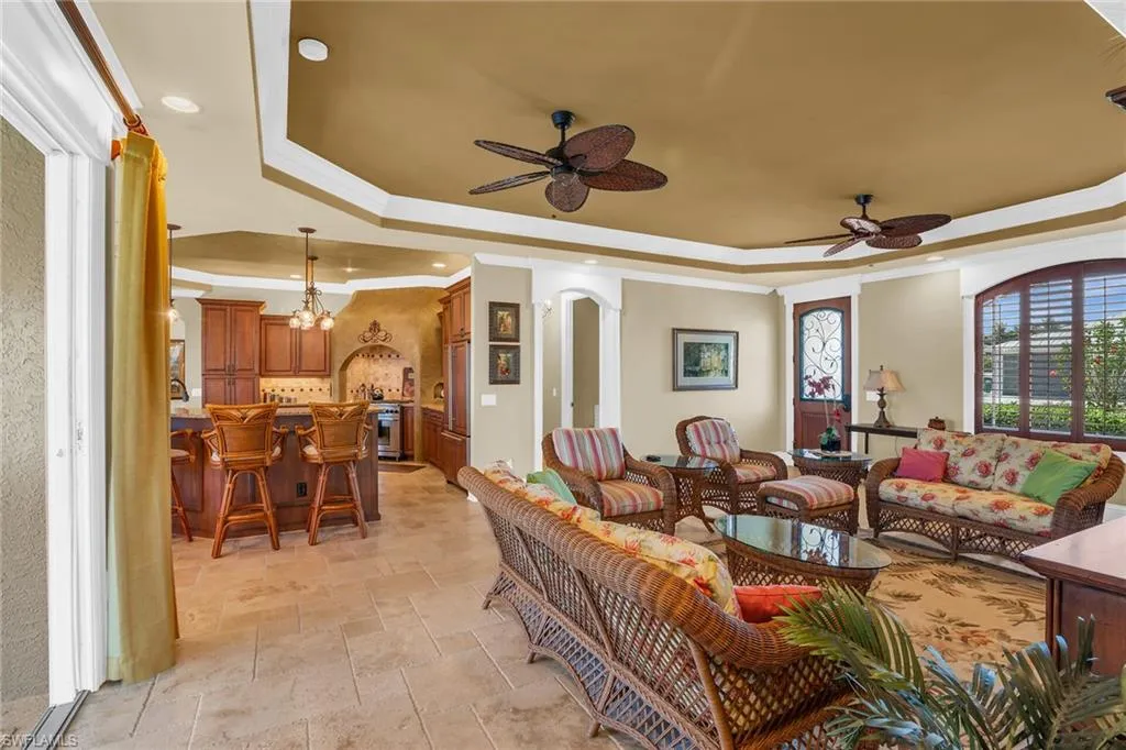 Live the Florida dream from sunrise to sunset at 171 Sunset Cay, located in the hidden gem of Port of the Islands. This exceptional waterfront home offers outstanding quality, value, and lifestyle, and serves as your gateway to the legendary Ten Thousand Islands and world-class fishing. With direct Gulf access via the Faka Union Canal, you will enjoy cruising through some of the most pristine backwaters in Southwest Florida. The magic begins the moment you step inside. Sweeping wide water views overlook the marina and intersecting canals, creating your own private slice of waterfront paradise. Outside, an expansive 80-foot American-made, maintenance-free dock awaits. Designed for the avid boater, it features a Captain’s Walk, two boat lifts rated at 10,000 lb and 7,500 lb, and two large fiberglass dock boxes. Cast a line from your backyard or head out for a sunset cruise, embracing the true essence of coastal living. Inside, this approximately 2,000 square foot residence features three spacious bedrooms and a gourmet chef’s kitchen with solid wood custom cabinetry, wood-paneled appliances, a 6-burner gas Dacor range, wine cooler, and a large granite breakfast bar that seats seven. Plantation shutters allow warm natural light to fill the home while maintaining privacy. Custom built-in cabinetry enhances every closet, providing elegant and efficient storage. Travertine tile flows throughout the main living areas, complemented by rich wood flooring in each bedroom. Tray ceilings with crown molding, designer lighting, and solid-core interior doors highlight the high-end craftsmanship found throughout. The two-car garage is equally impressive with epoxy floors, built-in workspaces, and storage accessories that keep tools and recreational gear organized. Outdoors, lush tropical landscaping and a half-moon driveway create striking curb appeal and offer ample guest parking. The heated pool, equipped with both solar and electric systems, provides a serene retreat for relaxation and fun. Hurricane impact doors and windows, roll-down shutters, and a 250-gallon buried propane tank offer peace of mind during storm season. This stunning home is being sold furnished, making your transition to paradise effortless. Discover why Port of the Islands is one of Naples’ best-kept secrets and experience waterfront living at its finest.