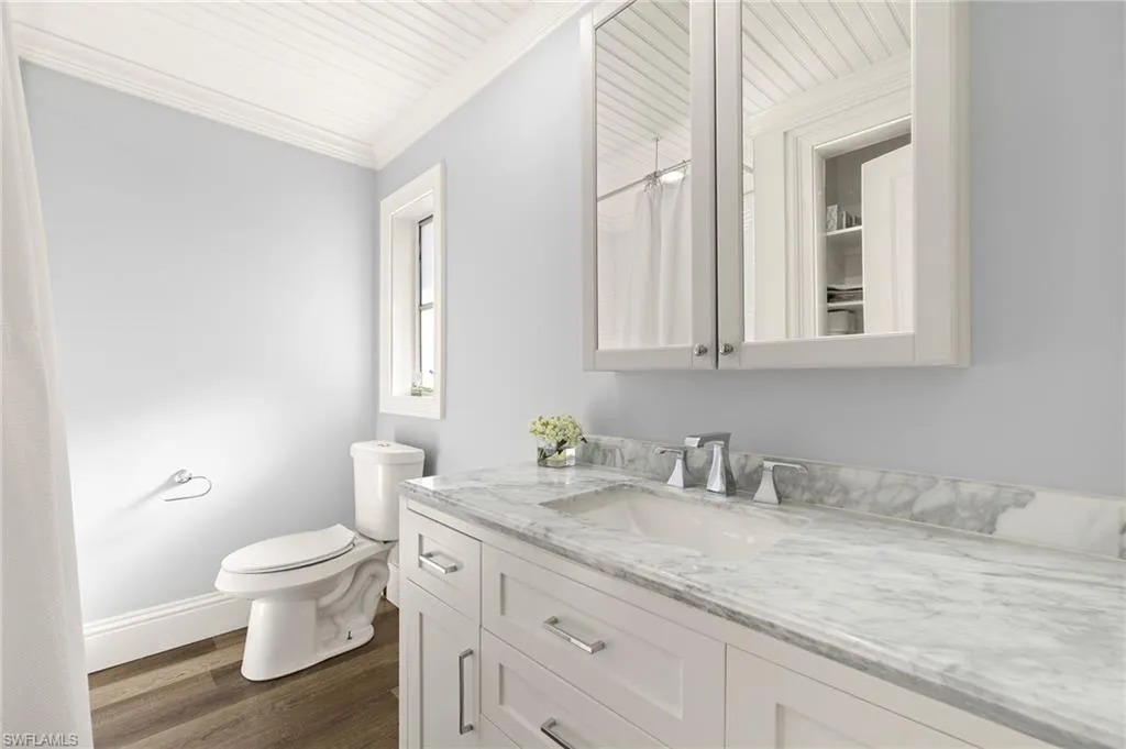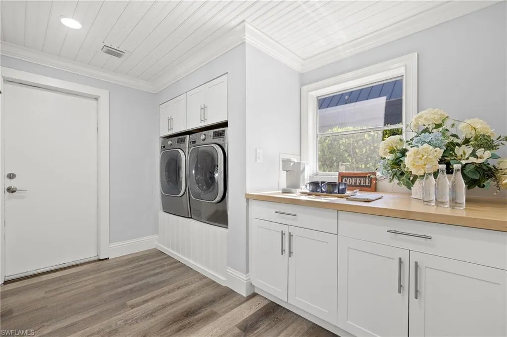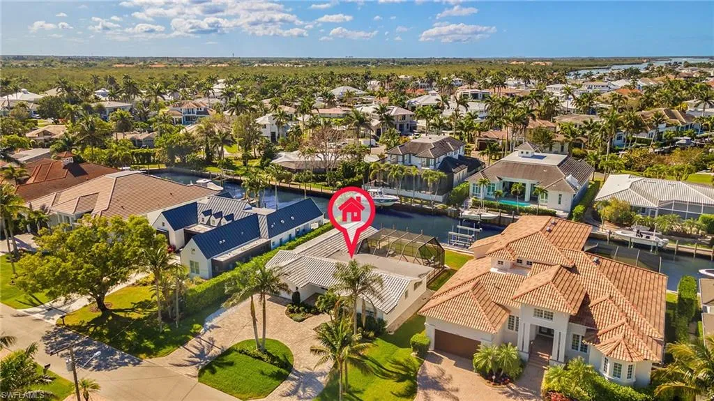 Discover your perfect oasis in this prime Marlin Drive location, just six lots from the beautiful Naples Bay. With a sun-drenched pool and highly coveted south-facing exposure, this property offers a luxurious and relaxing lifestyle. 15,000 on lift! Situated on a low-traffic street with easy access to Naples Bay, this home has been thoroughly updated in 2021 with a host of modern amenities. Upgrades include a new electrical panel, new AC unit, all new electric fixtures and switch plates, a fully renovated kitchen with stylish quartz countertops, induction flat surface stove top, new double oven and high-end appliances, including a large washer and dryer. Enjoy the convenience of new plumbing, a new hot water heater, fresh paint, crown molding, and custom wall woodwork including bead board ceilings. The property boasts a striking paver circular driveway and spacious outdoor living area with paver pool deck. The heated pool was resurfaced, with coping/edging and vibrant colored lighting. Boaters will love the quick, no-bridge access to the Gulf of Mexico, and the dock features new pilings, and new lift as of 2021. The interior of the property features modern design and decor throughout with beautiful white quartz countertops, modern white cabinetry, stainless appliances, and an open floor from the interior living to the outdoor living space Enjoy partial Bay views and marvel at sunsets or fireworks from Naples Pier during the Fourth of July. This is one of the last opportunities on Marlin Drive to own a south-facing lot with potential to build your dream home in the future. Ideally located just minutes from downtown 5th Avenue South and 3rd Street South’s fine dining, world-class shopping, entertainment, and white sand beaches, this home offers the best of Naples living. Don’t miss this chance to own a slice of paradise!