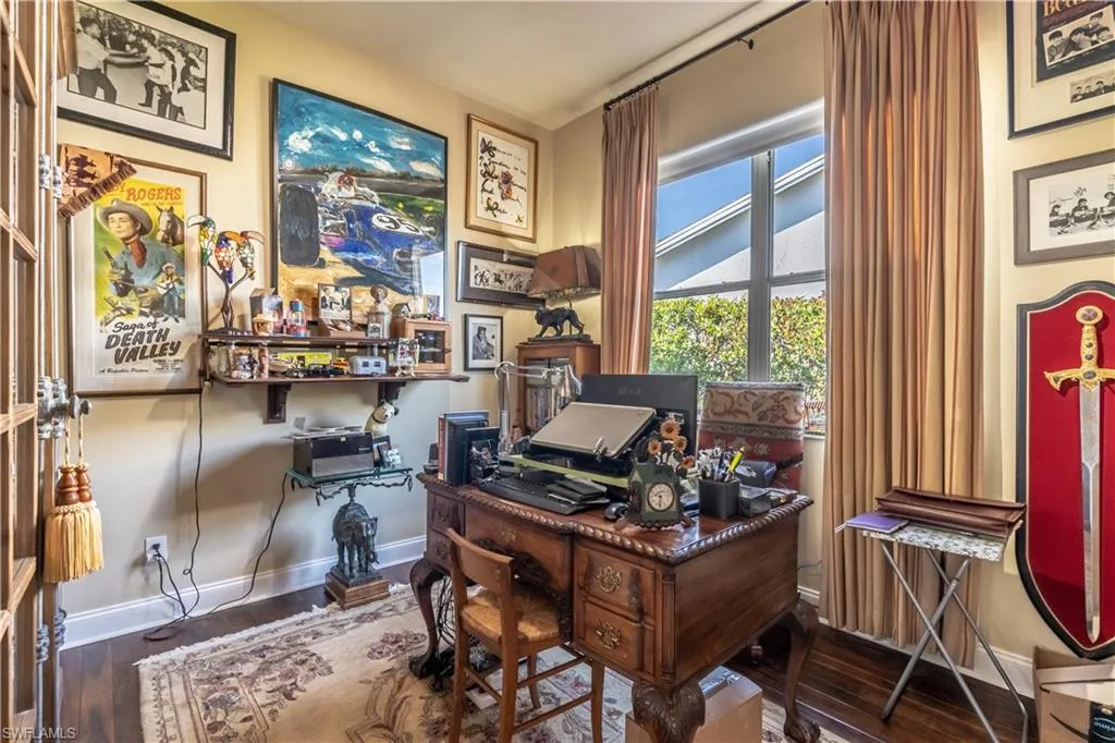 BRIARWOOD COURTYARD LAKE FRONT POOL HOME -MOTIVATED SELLER BRING ALL OFFERS -ONE OF THE LOWEST PRICE PER SQ. FEET IN BRIARWOOD! The main house offers 4 bedrooms Plus a Den & 3 full bathrooms, Chat room, living room & dining room. Crown molding & 6-inch baseboard moldings in home. Briarwood is a 24-hour manned gated community less than 15 minutes from shopping, dining & entertainment of 5th Ave & Naples world renowned beaches. Amenities & Low association fees and generous lease limits make this community ideal for all buyers. The minute you step into this stunning courtyard home, you feel like you are in a serene captivating sanctuary in a tropical Paradise. The courtyard is a feast for the senses, with the soothing sounds of the rock water fall spilling into the lovely heated swimming pool. The courtyard is surrounded by beautiful native landscaping, palm trees & plantings. The private lanai is surrounded by a 6.5 ft. wall. The courtyard is approximately 992 sq. ft. of brick pavers, making your lanai large enough to host all your friends & family. The back of the home features a patio with lush landscaping, & serene eastern sunrises over the views of the lake while the courtyard lanai takes advantage of southwestern sun all season long. Once you enter the main home you will be met with a merging of old-world charm & Extraordinary Court Yard Home. Old Chicago brick, hardwood floors throughout the home, priceless antique chandeliers, embassy gate adds character to the home which is rich & inviting. The spacious island kitchen features granite countertops and backsplash. All upgraded stainless steel appliances in Nov. 2019. Induction ceramic cooktop, convection oven, large capacity 4-door refrigerator, microwave & dishwasher. Tons of cabinet & pantry storage. Hardwood Floor is Acacia Wood, Hand scraped aztec tan mixed widths. With lots of windows and the triple pocket sliding doors to the lanai, this home’s unique courtyard floor plan takes full advantage of all the natural sunlight and indoor, outdoor living. The laundry room has storage galore. Four cabinets over new washer & dryer, purchased 11/24. Also, in the laundry room there is a double door pantry for all your storage needs. Double French doors exit to the courtyard from the primary bedroom, allowing you to enjoy the views & sounds of the courtyard pool & waterfall. The primary bathroom has been fully renovated in an elegant and modern style with granite countertops, dual sinks, separate water closet and large door-less shower and contains a large walk in closet. Additionally, a bonus den can be an closet or office or baby room. The den could alternatively be used as a private home office off the master with it’s own courtyard access. Perfect for remote workers. The separate cabana features a bedroom, large bathroom with granite countertops, closet & linen closet offering privacy for both you & your guests . Welcome Home !!