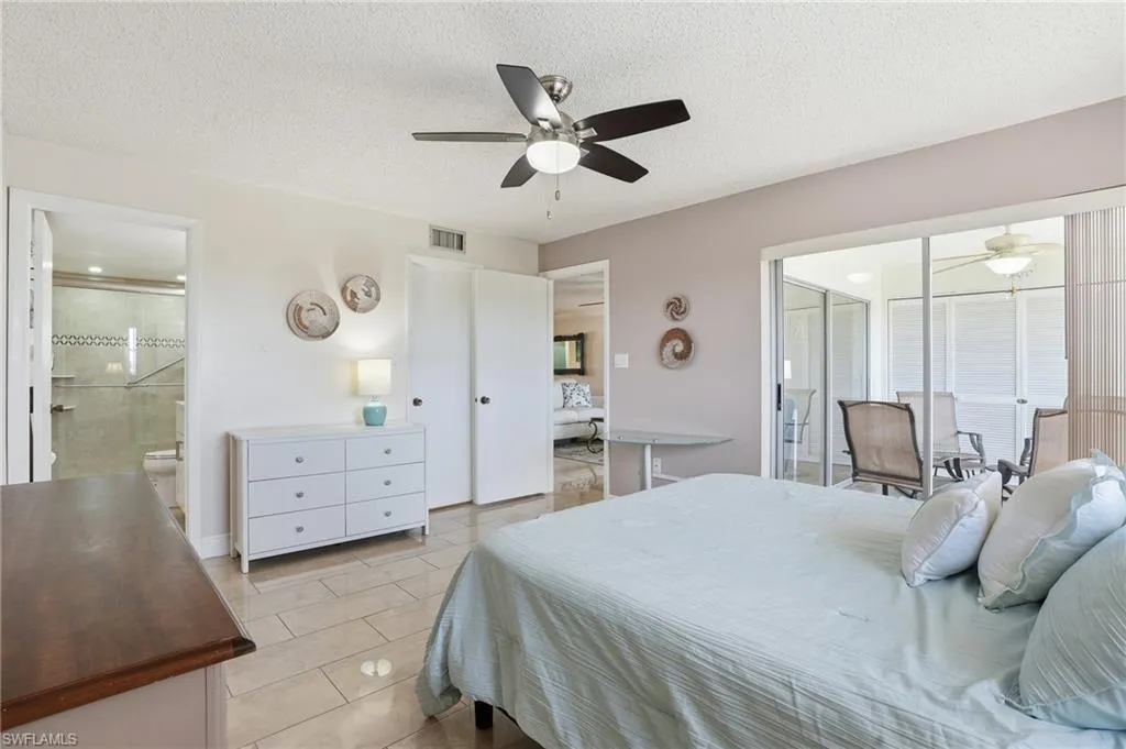 The guest bedroom suite offers a private retreat with a pocket door, a modern tile shower, and a quartz-topped vanity, while the spacious primary suite includes an oversized closet and a beautifully updated ensuite bath. Enjoy mornings and afternoons on the screened lanai overlooking tranquil WATER AND GOLF COURSE VIEWS – —an ideal backdrop for bird watching or simply unwinding at the end of the day. This home also features updated lighting fixtures throughout, adding a polished touch to every room.