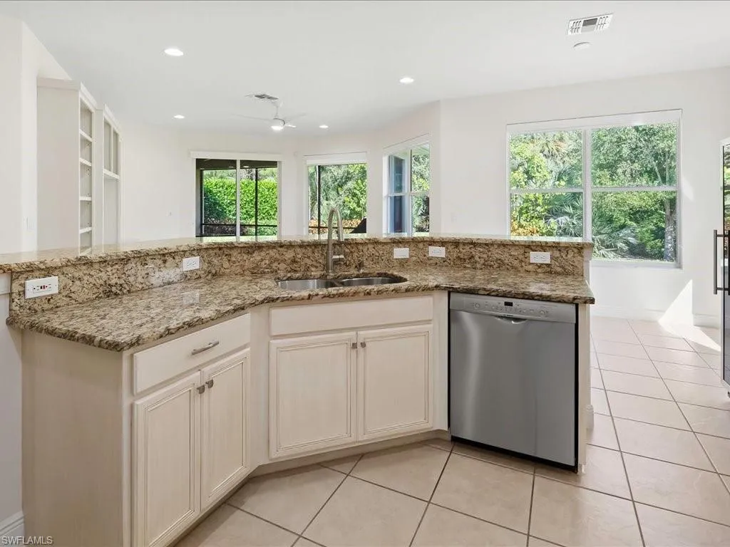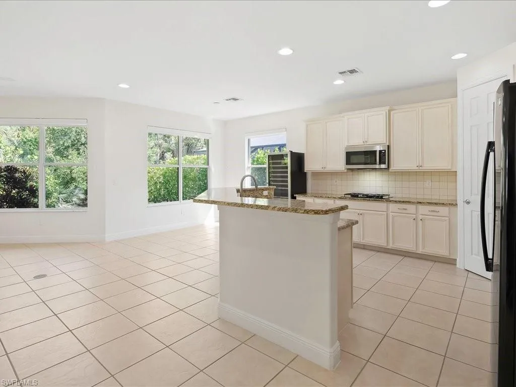 Best deal in North Naples! New roof is being installed. A rare opportunity to own this stunning contemporary 3bedrooms, 2 bathrooms house in coveted North Naples! Prime location, only 10 minutes from 5th Ave, Mercato, beaches, NOT IN A FLOOD ZONE. 2025 NEW TILE ROOF, 2025 WATER HEATER, 2025 GE MICROWAVE, 2023 BOSCH DISHWASHER, 2023 WASHER, 2020 GE DRYER, 2019 LENNOX AIR HANDLER. 2020 LUXURY VINYL FLOORS IN ALL BEDROOMS. No carpeting. This luxury home is huge, much larger than it looks from the street, updated and in a perfect move-in condition. Sunny living room features dramatic wall of windows, 9.4’ ceilings, great open space living and dining rooms, delightful chef’s kitchen and a large lanai that opens to great size yard, perfect for adding a pool. Exquisite white kitchen has modern cabinetry, granite countertops, walk-in pantry. Kitchen and breakfast areas open to oversized lanai, fabulous for grilling and outdoor entertaining. Luxurious master suite with 10’ coffered ceilings has 2 generous walk-in closets, 3rd regular closet and elegant spa like bath with separate tub and shower. Oversized attached 2 car garage has added storage shelving system. Well run financially solid association has the community pool, spa, clubhouse with gym and party room, boardwalk, steps from this house. Coveted gated neighborhood of Aviano provides a luxury secure maintenance free lifestyle in a lush tropical setting with Royal Palm trees, 10 min driving to sandy Gulfshore beaches and 5th Ave, A+ rated North Naples schools, great shopping and dining. Pet friendly community with no weight limits for dogs! Not in a flood zone. Take a 3-D Tour, CLICK on the 3D BUTTON and walk around.