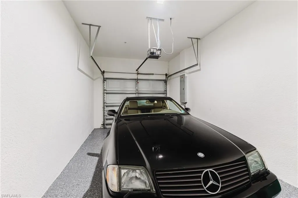 The 1-car garage features an upgraded epoxy floor, adding durability and style.