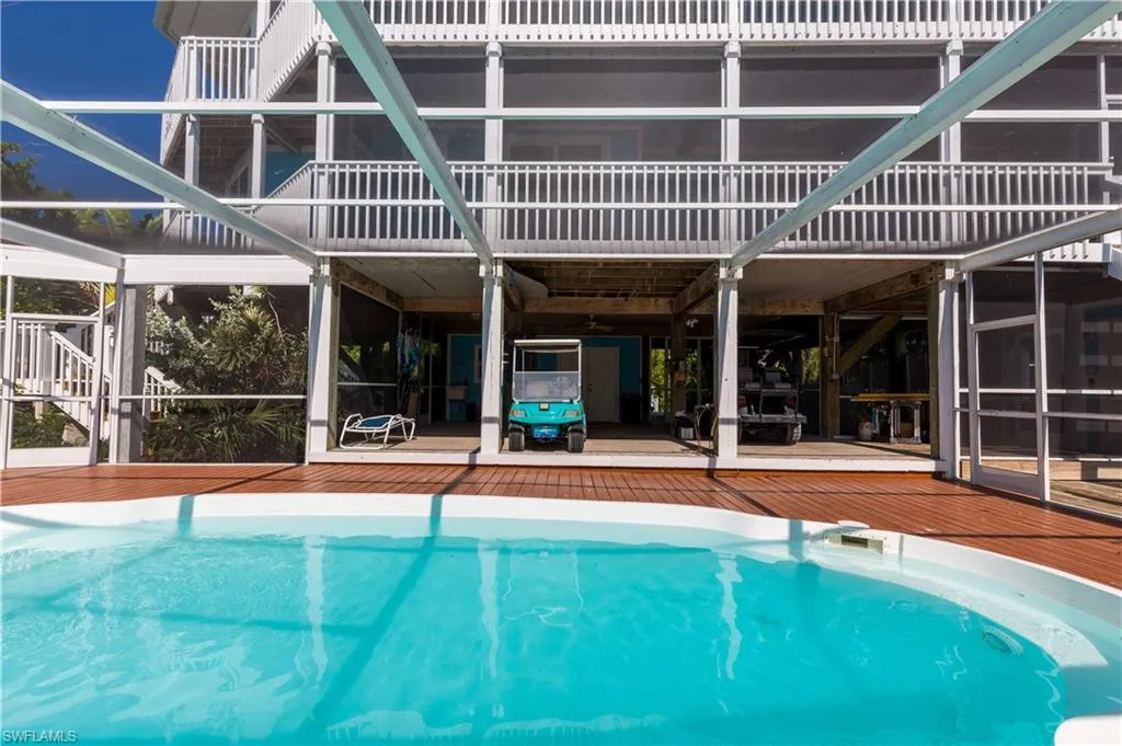 UPPER CAPTIVA HOME. THIS Gorgeous home, 3 bedroom + Den & 4 baths, has everything you would want for an island home. GULF ACCESS CANAL home with a large dock. Room for 2 boats on a navigable canal. A large pool when the kids want to swim “now.” Come see the wonderful views overlooking the wildlife preserve that go on for miles which gives the feeling of being far away from the rest of the world. The living area is on the upper floor to more enjoy the views of the State Wildlife Preserve. All hurricane impact glass windows. Cedar shiplap exterior siding. Wood burning fireplace. And the views are even better from the upper mezzanine area above the living room which could be another sleeping area. Plenty of room for guests with 3 bedrooms, a den and 3.5 bathrooms. Enjoy a beautiful kitchen. The decks wrap around the house for easy maintenance. Enjoy the large pool completely screened in. The beach is just down the road to a parking area with access to the widest beach on the island. New roof. Elevator! Could be an exceptional income producing property. Make an appointment to see this wonderful home.