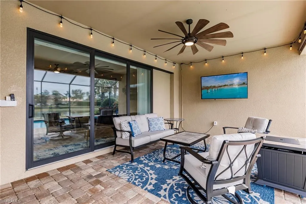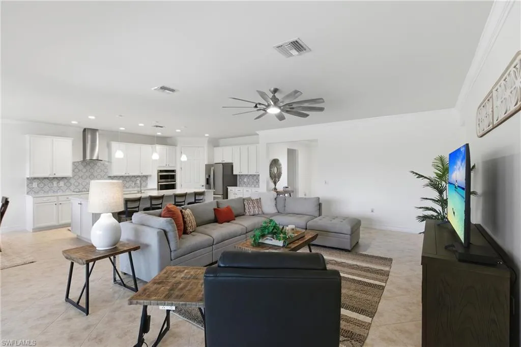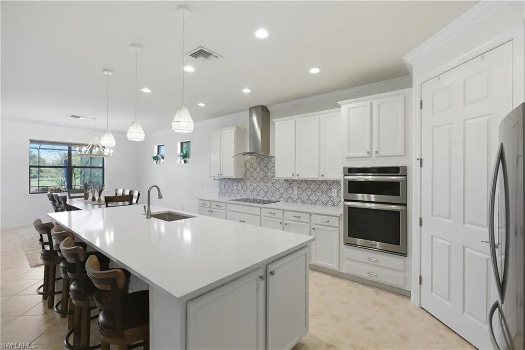 Beautifully updated with a fresh new look and feel, this chic yet comfortable home in the highly desirable Bridgetown at The Plantation is brimming with modern finishes and designer touches that capture the essence of Southwest Florida living while blending timeless elegance with everyday ease. This 2,500+ sq. ft. Pinnacle floor plan by Pulte Homes features 3 bedrooms, a den, and 3 baths, thoughtfully refreshed with a newly updated kitchen and primary bath, fresh paint, and modern design elements that blend style and function. Every detail has been thoughtfully upgraded, including impact-resistant windows and doors, plantation shutters, deluxe cabinetry, newer HVAC and water heater, and custom LED lighting. The open-concept great room flows effortlessly into the expansive kitchen, where an oversized island invites gatherings and entertaining, while just beyond, the resort-style pool and spa—powered by advanced smart controls—create a seamless extension of the living space with a spacious under-truss lanai and pavered cage deck ideal for sunset views or cozy evenings by the fire pit. Additional highlights include an oversized 3-car garage with extended depth and epoxy flooring, remote-controlled fans, whole-home Wi-Fi with app-based energy monitoring, and elegant crown molding throughout. Residents of Bridgetown enjoy world-class amenities including a resort and lap pool, fitness center, outdoor bar, pickleball and tennis courts, bocce, and a catering kitchen and event room for social gatherings. Optional memberships to The Plantation Golf Club are also available. Ideally situated just 10 minutes from SW Florida International Airport, 30 minutes from Gulf beaches, and close to premier shopping and dining, this stunning home offers luxury, comfort, and convenience in equal measure.