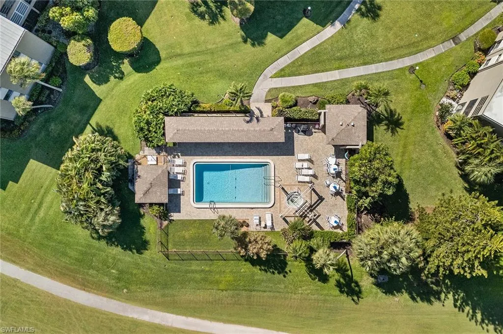 Nearly $100,000 spent to renovate this first-floor condominium near the community pool and hot tub. Gorgeous lake and golf course views! Goodbye galley kitchen. Hello stunning, open kitchen offering island with breakfast bar, quartz countertops, artfully designed backsplash, farm sink, soft-close drawers, pantry, white shaker cabinets and drawers, drop ceiling removed and custom lighting added, complete with a graphite-colored LG appliance package. Goodbye washer and dryer in outside closet. Hello in-residence, stacked laundry system. So many fantastic improvements. Warm, easy-to-maintain vinyl floors throughout main living areas and bedrooms. Primary bedroom with custom closet doors and lots of windows offering golf course and lake views, plus direct access to the glass-enclosed lanai. Primary bath has ship lapped walls, modern light fixtures, new storage cabinet and sink, mirrored medicine cabinet and stunning shower. Spacious guest bedroom has walk-in closet and a guest bath with shower/tub combo, and updated light fixtures, sink and faucet. Glass enclosed lanai with electric storm shutter for year-round enjoyment. Plus, an extra outdoor seating area in the rock garden. Large storage closet just outside the front door and another storage cubby around the corner. Reserved covered parking. Keyless entry pad on front door. Move-in ready! No stairs or elevators. Less than 10 minutes to downtown Naples and the beach. This is a must-see. Furniture is negotiable.