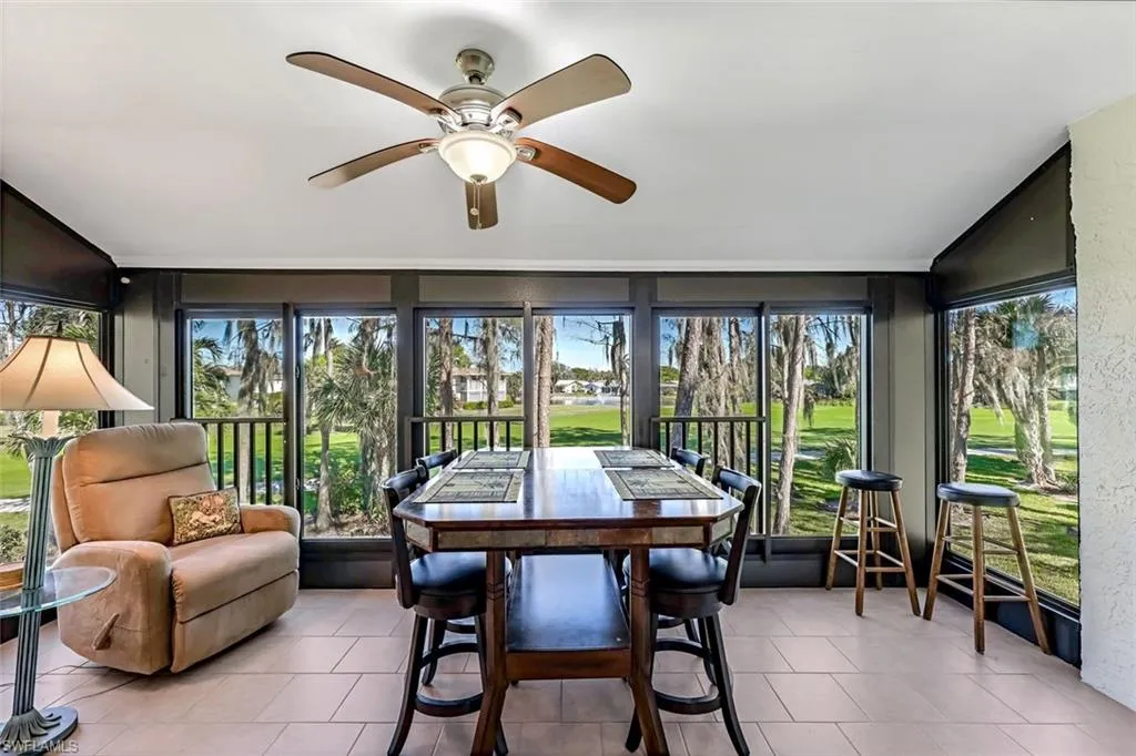 Nestled in the vibrant heart of Naples, this exquisite property combines luxury living with unmatched recreational amenities in a community that offers bundled golf, nine sparkling pools, tennis, pickleball, bocce, cornhole, a delightful restaurant, and an inviting clubhouse teeming with activities. Imagine evenings spent on the fully enclosed lanai, sipping your favorite beverage as you admire the breathtaking sunsets over the lush golf course, viewed both from the front and back of your abode. The home is adorned with stainless steel appliances and boasts a beautifully updated kitchen, bathrooms, and flooring, ensuring modern comfort and style. With a detached garage offering convenience, you’ll relish the ease of being in close proximity to downtown Naples, the boutique shops of 5th Avenue, and the pristine Gulf Coast beaches, perfect for those who treasure the blend of serene nature and cosmopolitan flair. Make this your PERMANENT FLORIDA VACATION! SAY YES TO A CHANGE IN ADDRESS!