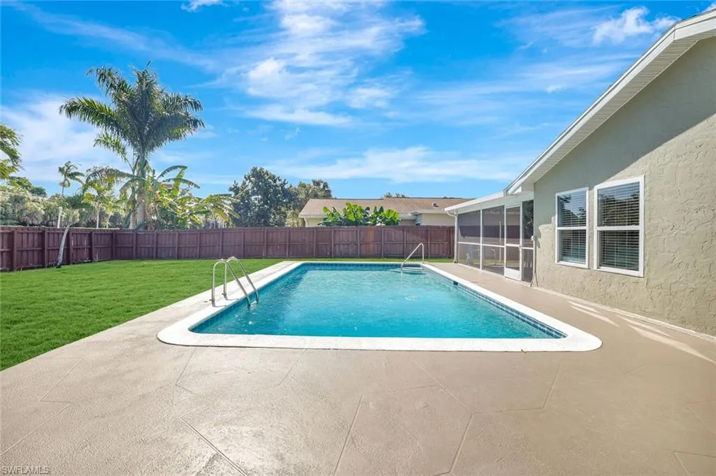 Discover the Southwest Florida lifestyle from the comfort of this inviting Naples home. Ideally situated just minutes from downtown, world-class dining, and some of the area’s most pristine beaches, this home offers both convenience and coastal charm. The property features a refreshing swimming pool and an expansive backyard, perfect for outdoor entertaining or creating your own private oasis. An extra-long driveway provides added convenience, while the beautifully landscaped front yard, accented with tropical palm trees, enhances the home’s welcoming curb appeal. Inside, the open floor plan is designed for comfort and versatility, ideal for both everyday living and hosting guests. Featuring custom crown molding, tile flooring throughout, and a well-appointed kitchen complete with stainless steel appliances, wood cabinetry, a breakfast bar, and flexible counter space. Enjoy having no HOA restrictions, a roof that was updated approximately six years ago, and a private well for irrigation. CCPS shows highly rated schools. This home presents an exceptional opportunity to enjoy Naples living at an affordable price. Imagine the possibilities!