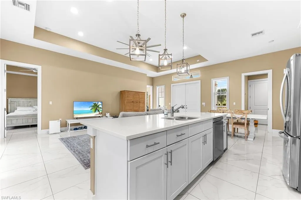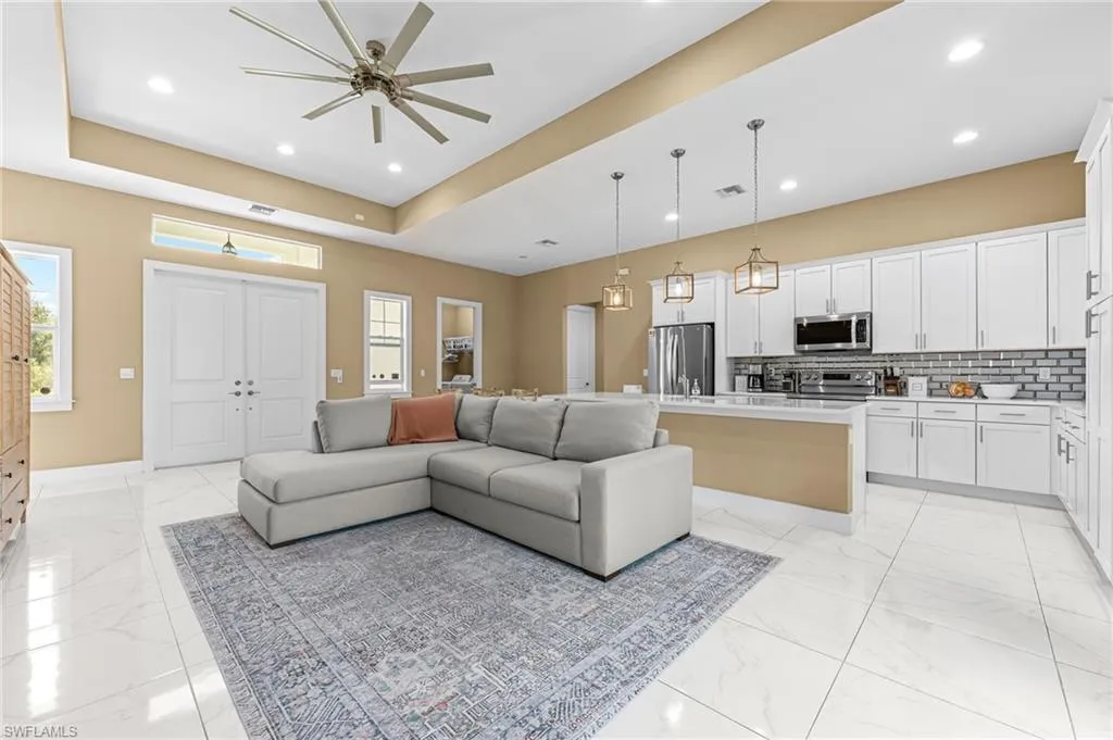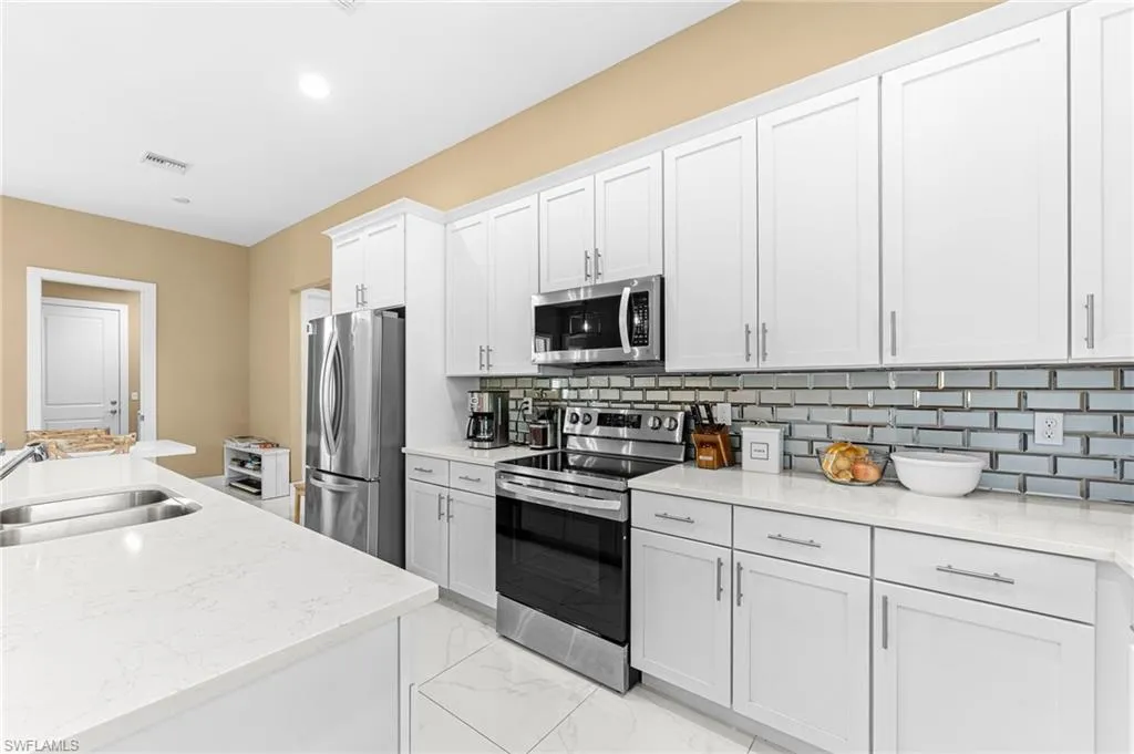 Beautiful and spacious 3-bedroom plus den (or optional 4 bedroom) home! This property features elegant 24″ tile throughout, stunning quartz countertops in both the kitchen and bathrooms, and sleek stainless steel appliances. Enjoy high-volume ceilings, 8′ interior and exterior doors, and impact-resistant windows and doors for peace of mind. The garage, lanai and front porch all boast professionally finished epoxy flooring adding durability and style. Located in a fantastic area just minutes from Immokalee Road, offering convenience to shopping, dining and more!