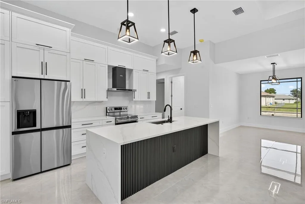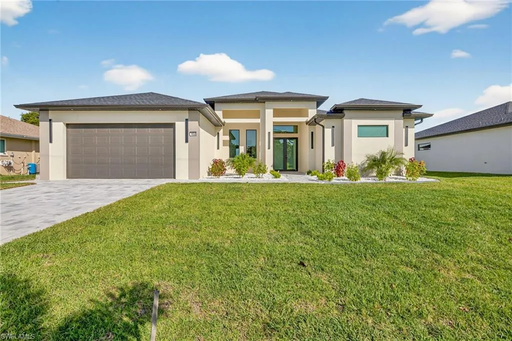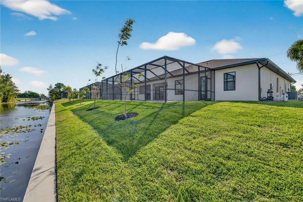 STUNNING, never-lived-in new construction luxury home on a freshwater canal in highly desirable SW Cape Coral, offered unfurnished with the option to furnish for a turnkey move-in! NOT IN A FLOOD ZONE and NO HOA!