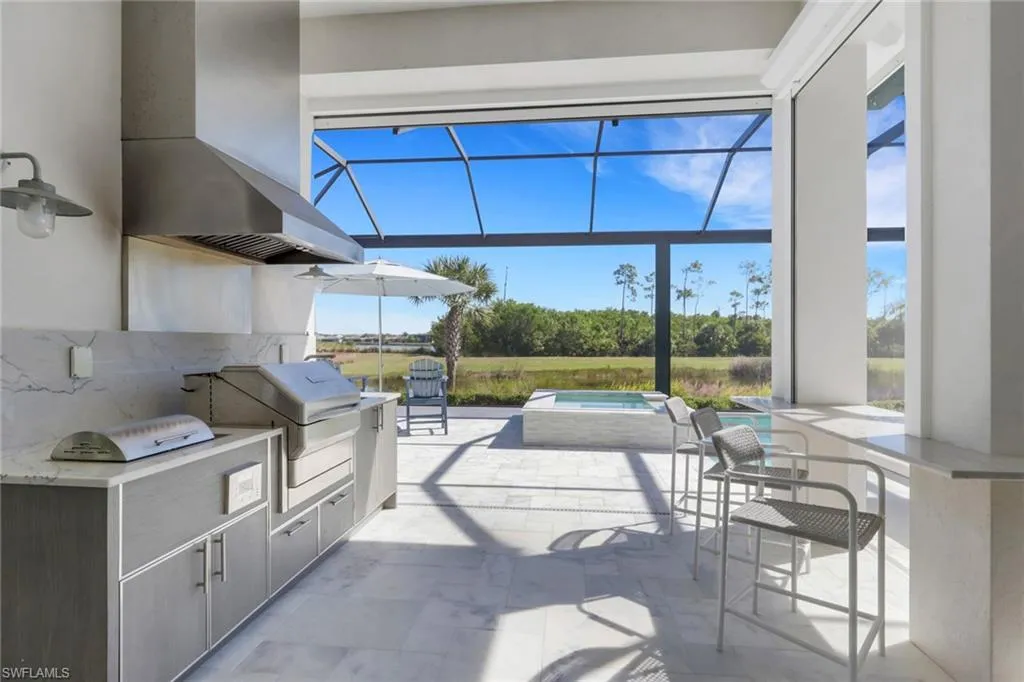 Discover over 3,000sqft of sophisticated living space in this exquisite 4-bedroom ensuite residence situated on a private preserve and double water view lot within the prestigious Isles of Collier Preserve community. Every detail of this home has been meticulously curated with designer touches, from the graceful European white oak flooring and custom living area entertainment wall and ceiling, to the practical elegance of plantation shutters, custom drapery and organizers in every closet and garage. The gourmet kitchen is a chef’s dream, featuring sleek quartz countertops, top-tier JennAir appliances, custom cabinetry, additional wine and beverage refrigerators and organized walk-in pantry. This open-concept layout and walls of sliders provide the ideal indoor/outdoor lifestyle that is perfect for both grand entertaining and intimate daily life. The spacious outdoor private oasis with southeastern exposure features a custom saltwater pool and spa with all-new equipment, one-of-a-kind kitchen with smoker, and elegant marble pavers. You will certainly appreciate complete privacy with entertaining wildlife in and around the natural preserve, lake and Cypress Waterway. Lush colorful and manicured landscaping encompass this magnificent home. Beyond its beauty, this home is engineered for peace of mind with impact windows and doors throughout, a whole-house generator, an air-conditioned garage, insulated attic, storm screens, and a convenient hot water recirculating pump. For a seamless transition, this stunning property offers buyers the option to purchase the tasteful furnishings. The Isles of Collier Preserve is a premier gated community that embodies the refined yet relaxed Naples lifestyle. Residents enjoy exceptional amenities, including a resort pool, separate lap pool, fitness center, pickleball and tennis courts, bocce, a waterfront restaurant, kayaking, and miles of scenic biking and walking trails. Ideally located just four miles from iconic 5th Avenue South, it offers effortless access to fine dining, boutique shopping, vibrant entertainment, and Naples’ renowned white-sand beaches.