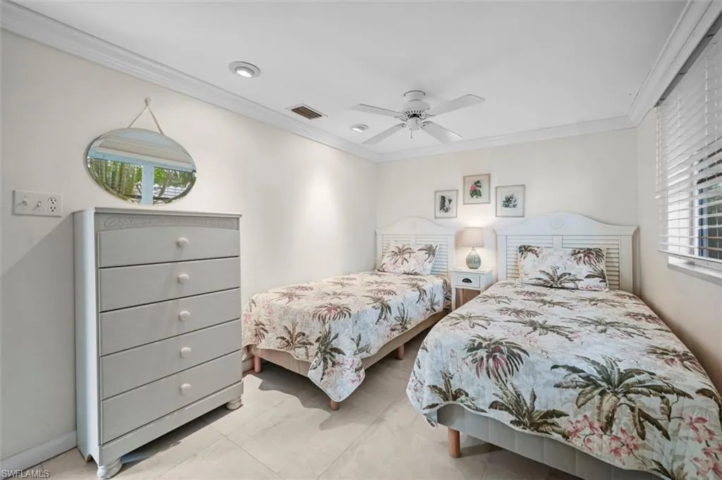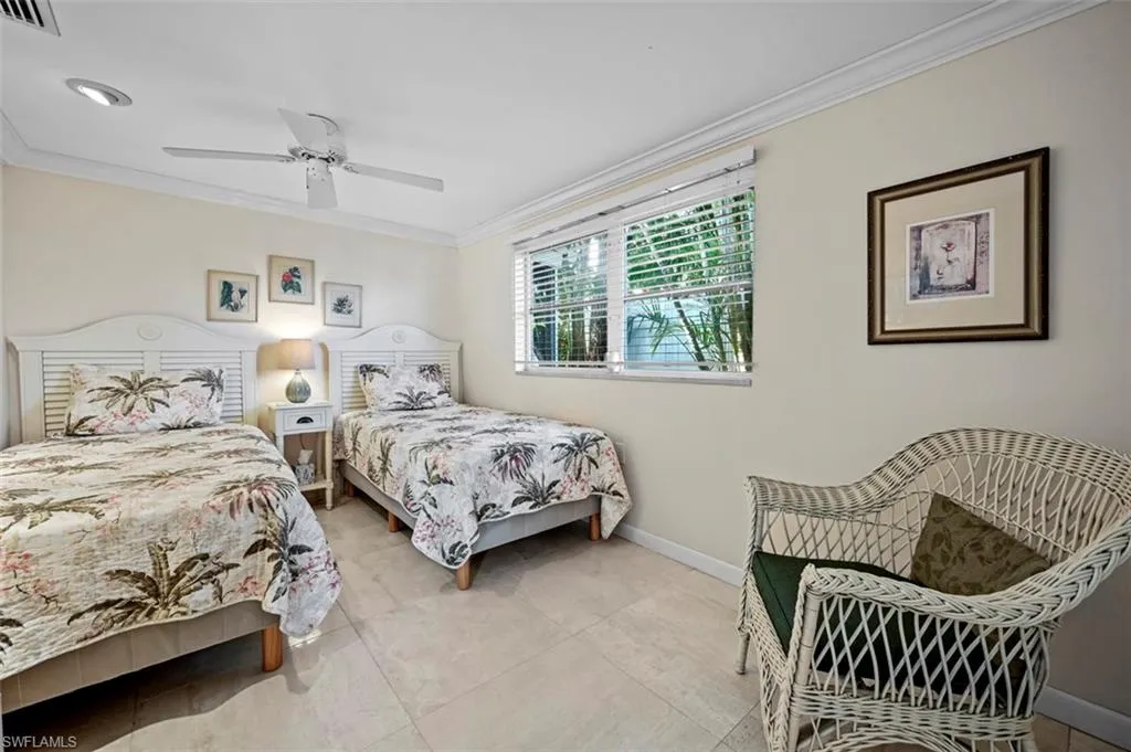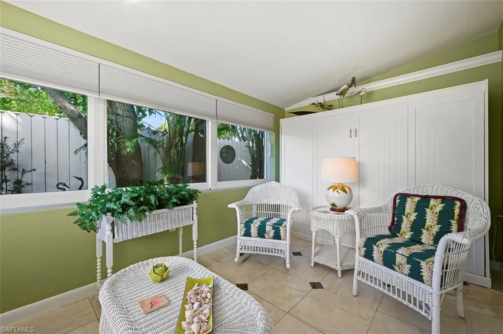This charming and inviting beachside cottage is ready for you to move in! Featuring two bedrooms plus a den, this home has been lovingly cared for and is in excellent condition. The exterior boasts brick pavers and a beautiful variety of native flowering plants and shrubs. Inside, you’ll find a bright and airy great room layout. The kitchen is equipped with white wooden cabinets, illuminated display cases, and granite countertops. Travertine marble flooring flows throughout the main living spaces. The den is bathed in natural light, overlooks a lovely garden, and includes a Murphy bed for visiting guests. The owner’s suite offers a cozy sitting area and is separated from the second bedroom, ensuring a peaceful and private escape with direct access to the outdoor space. The owner’s bathroom is generously sized, featuring a soaking tub and a large shower that is pre-wired for a steam option. The garage has been transformed into an additional living area but can easily be reverted back. The backyard is a serene oasis, complete with a spacious brick paver patio ideal for hosting family and friends. It is fully fenced and beautifully landscaped. Plenty of space to add a pool. Upgraded electrical box. Roof is only 4 1/2 years young. As seen on page 1 in the Naples Daily news!! This home has deeded boat ramp rights. For a nominal fee per year, you can join the boating association and launch a boat/jet ski/kayak. The launch is located on 3rd St. and is a quick 15-minute ride to the Gulf of Mexico. Located in flood zone X. Transferable flood policy for only $1,440 per year. COLLIER CO.