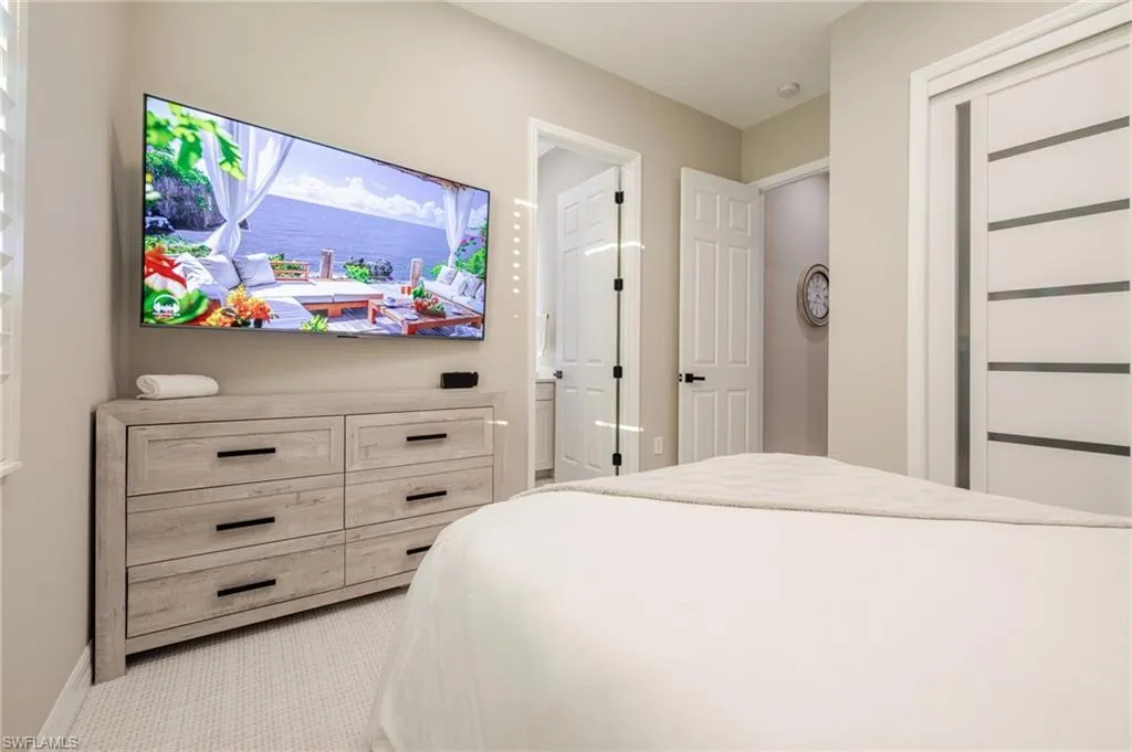 Welcome to this nearly new, meticulously maintained residence in the prestigious lakefront community of WildBlue, where luxury design and resort-style living meet in the heart of Estero. Perfectly positioned on an oversized tropical lot, this home blends sophisticated architecture, thoughtful upgrades, and everyday comfort. With nearly $210,000 in premium after-market enhancements and a recent appraisal of $1.1 million, it offers exceptional value and craftsmanship. The coveted Maria floor plan provides a bright, open-concept layout that flows effortlessly from the great room to your private outdoor retreat. Inside, elegant details elevate every corner—from Amalfi, Camero, and Lutron designer lighting to a custom lighted feature wall and illuminated wine rack that make an unforgettable impression. The chef’s kitchen showcases high-end Z Line appliances, sleek Italian fixtures, quartz countertops, and abundant cabinetry—perfect for making family dinners feel special or hosting engaging dinner parties. The owner’s suite features direct lanai access, while the spa-inspired bath offers dual sinks, new Kohler faucets, backlit mirrors, and updated hardware. The guest ensuite bath mirrors that same attention to luxury with a frameless glass shower, backlit mirror, and upgraded fixtures. Throughout the home, Luxury Vinyl Plank flooring, plantation shutters, and Hunter Douglas remote shades add sophistication and privacy. Additional features include a tankless water heater, an insulated and air-conditioned garage, and a nearly new LG washer and dryer in a thoughtfully designed laundry room with extra cabinetry. Every inch of this residence showcases attention to detail—from the custom exterior soffit lighting and refined sconces to the long paver driveway and lush professional landscaping. Outdoors, your personal oasis awaits with a Synergy wood ceiling, outdoor kitchen, and panoramic-screened lanai that opens to tranquil preserve views. Custom LED lighting illuminates the lanai and pool, creating a magical setting for evening entertaining. With storm-ready impact-resistant windows and doors, a NO FLOOD ZONE location, and low annual insurance, this home offers both peace of mind and effortless style. Living in WildBlue means enjoying access to world-class amenities, including a clubhouse with waterfront dining, a resort-style pool, fitness and wellness center, tennis, pickleball, bocce, walking trails, and a private boat ramp for kayaking or boating on the 800-acre lake. Conveniently close to Miromar Outlets, Hertz Arena, Gulf Coast Town Center, and RSW International Airport, this home perfectly captures the essence of luxury, leisure, and location—where every day feels like a vacation in paradise.